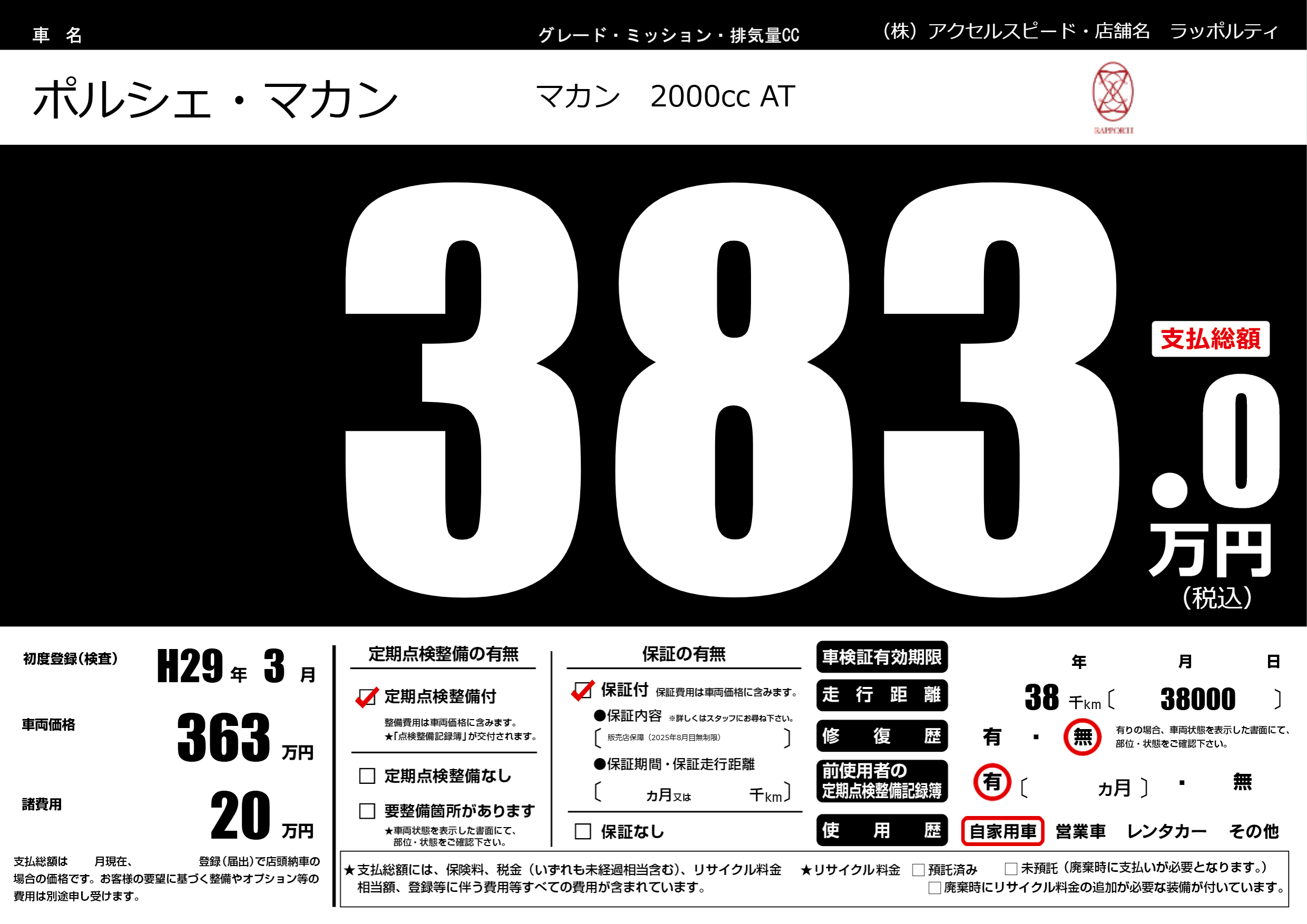 | 車名 | ポルシェ・マカン | グレード ミッション 排気量 |