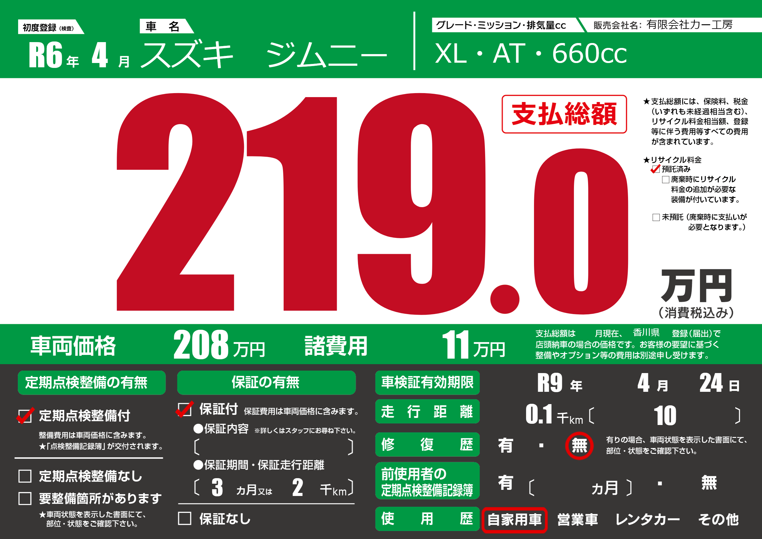 | 走行キロ | - | 初年度登録 | R6年4月 |