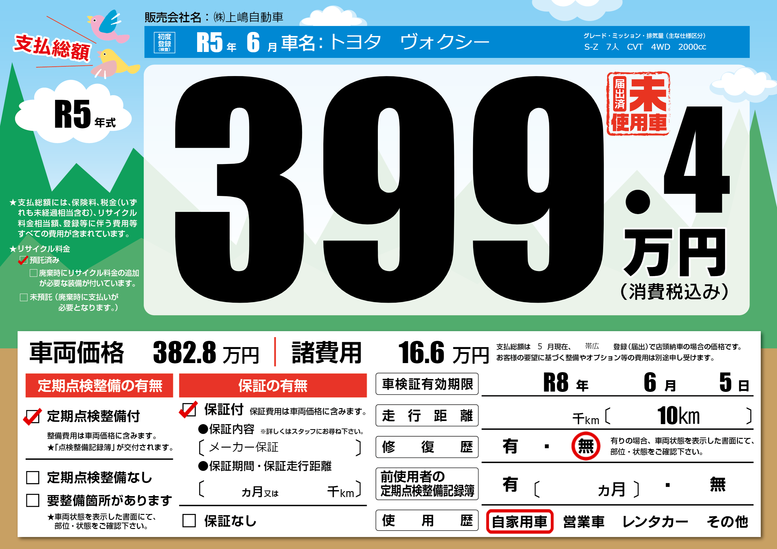 | 走行キロ | - | 初年度登録 | R5年6月 |