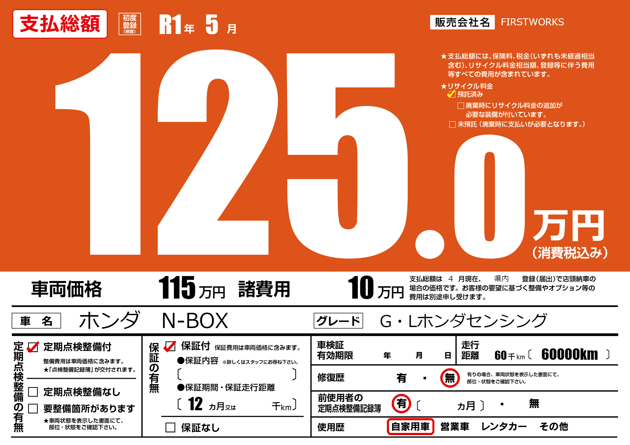 | 走行キロ | 6万km | 初年度登録 | R1年5月 |
