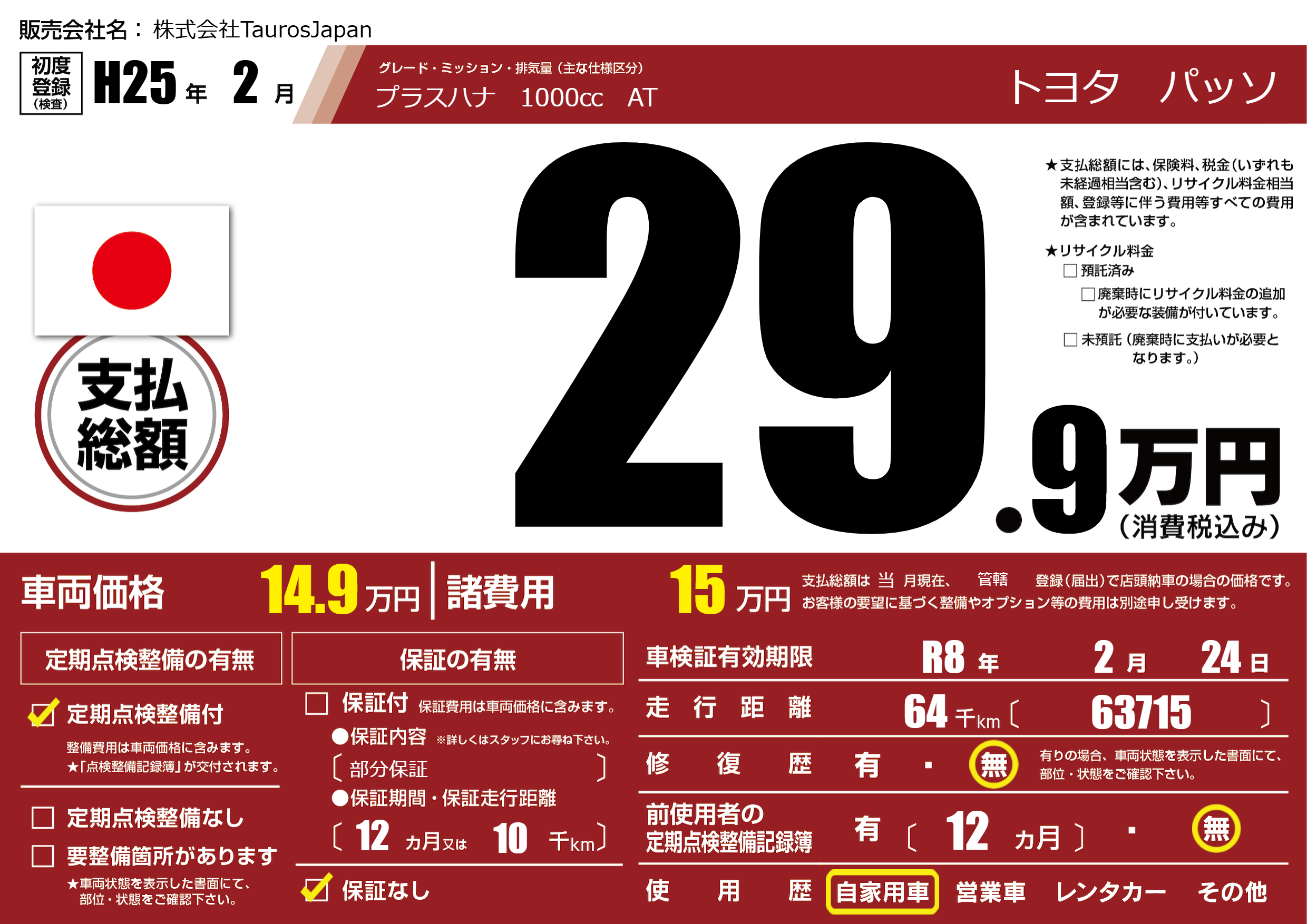 なし | 車検制限 | R8年2月24月 |