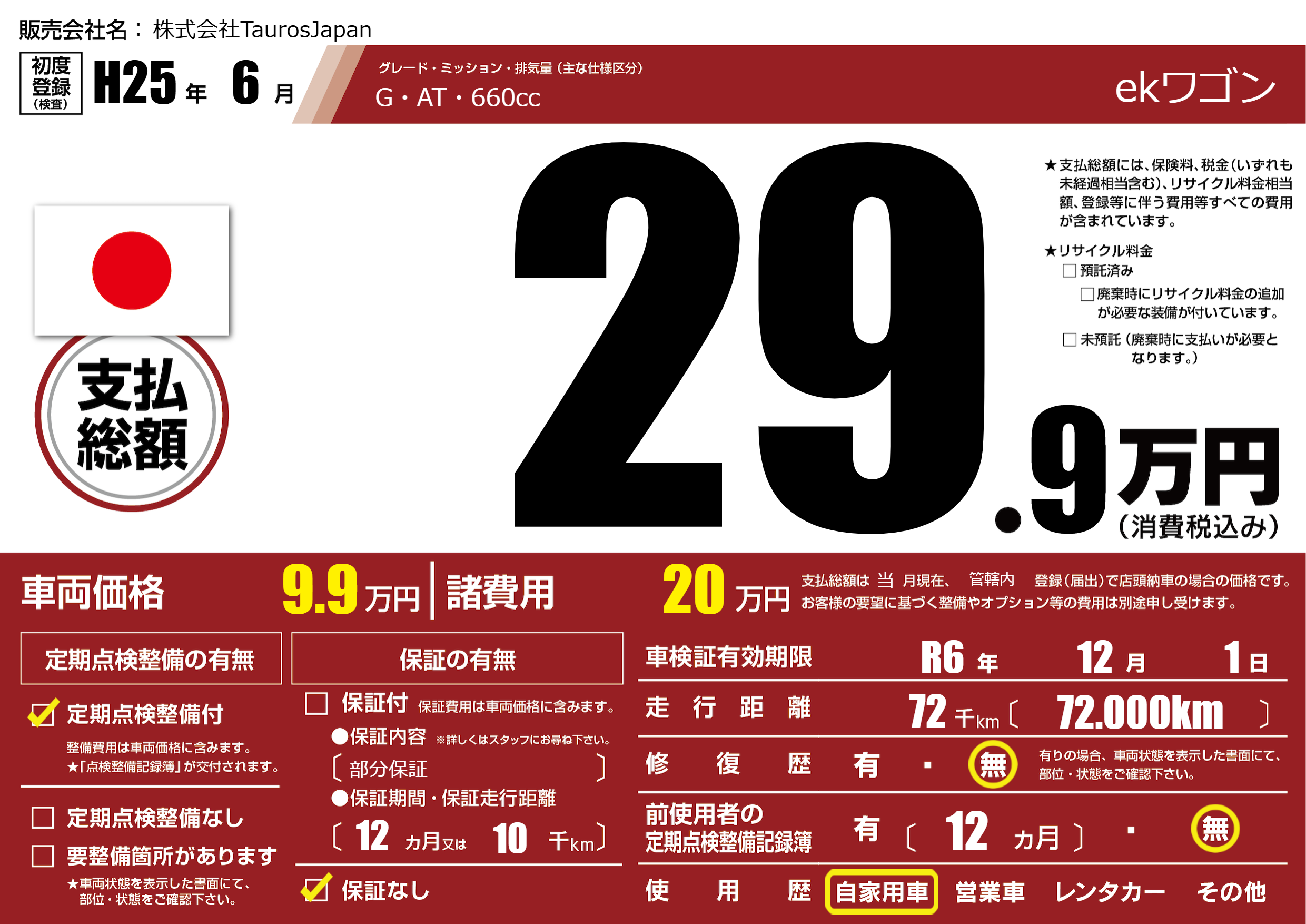 | 車名 | ekワゴン | グレード ミッション 排気量 |