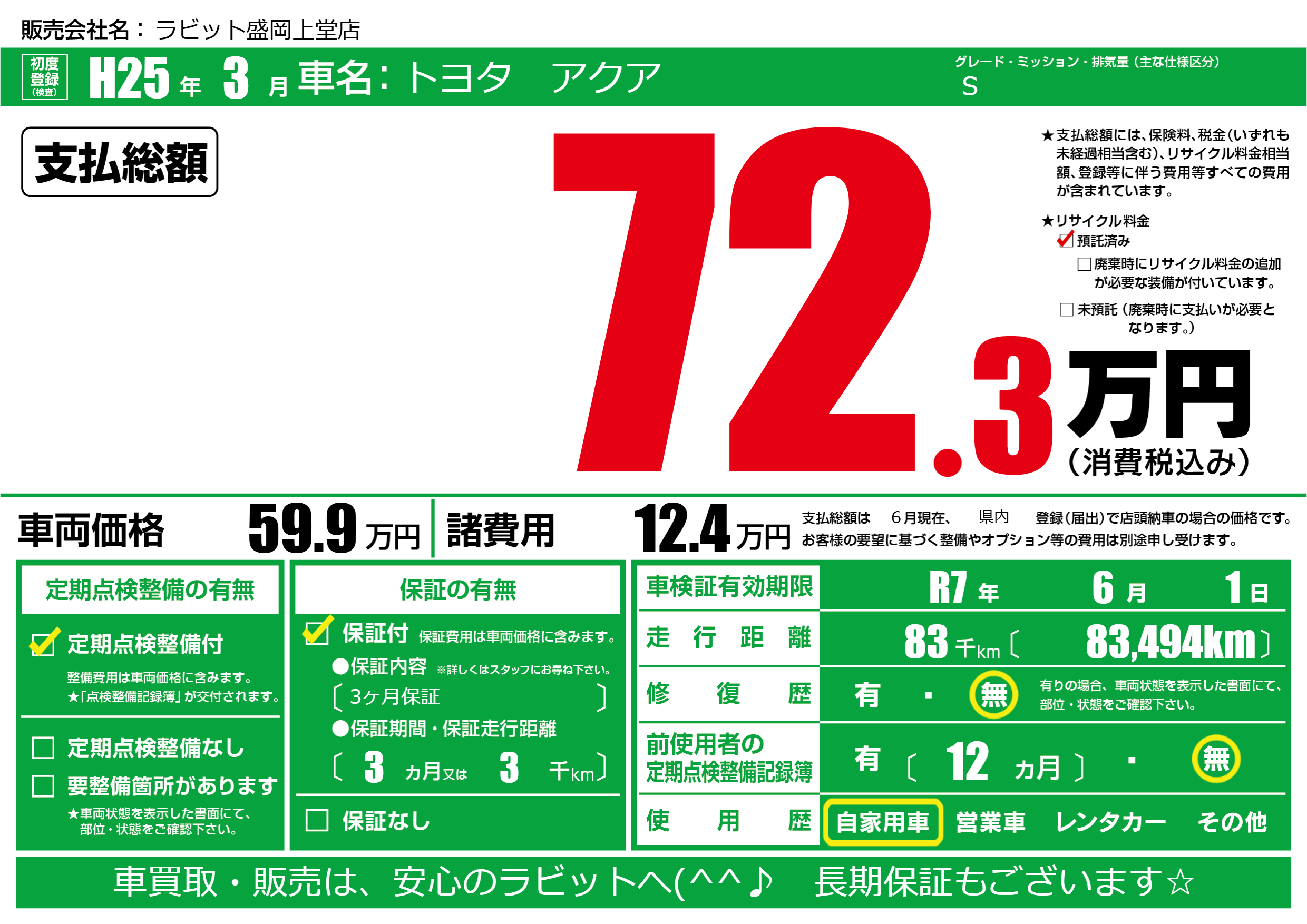 なし | 車検制限 | R7年6月1月 |