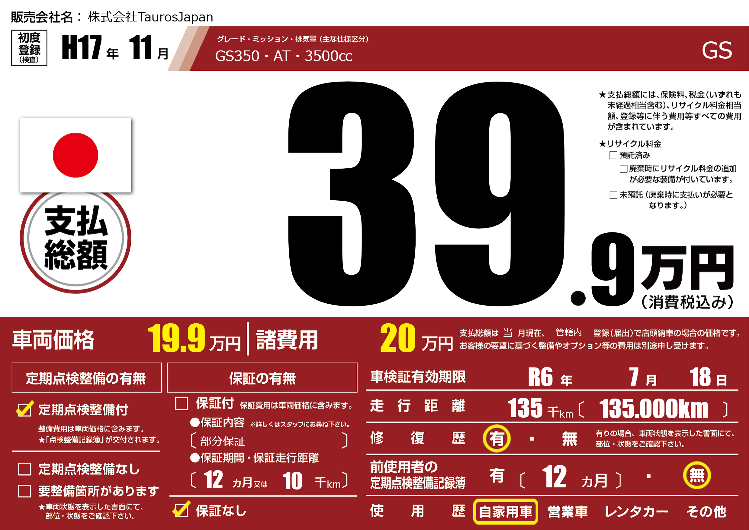 GS350・AT・3500㏄ |