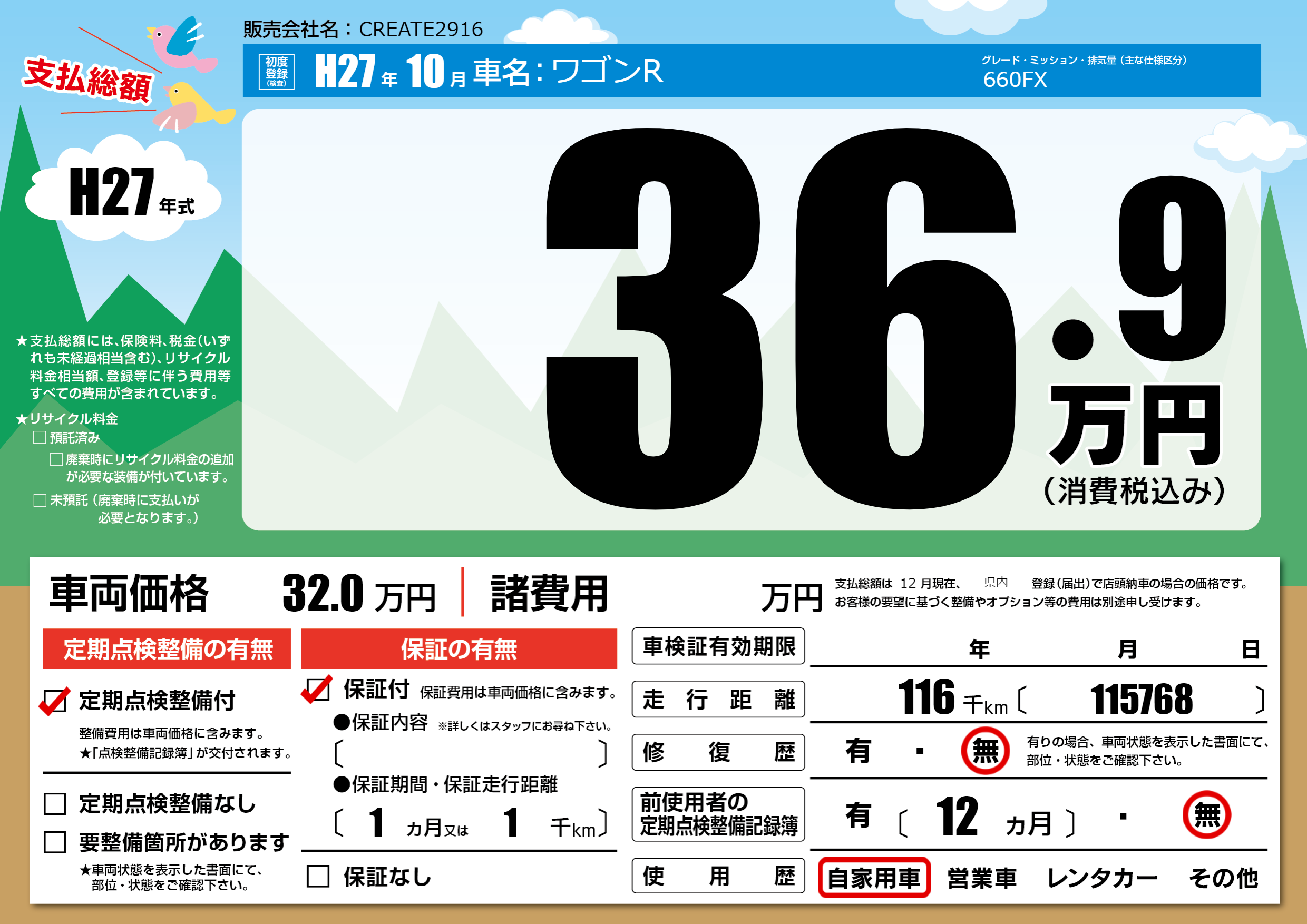 | 定期点検整備 | 定期点検整備あり | ||