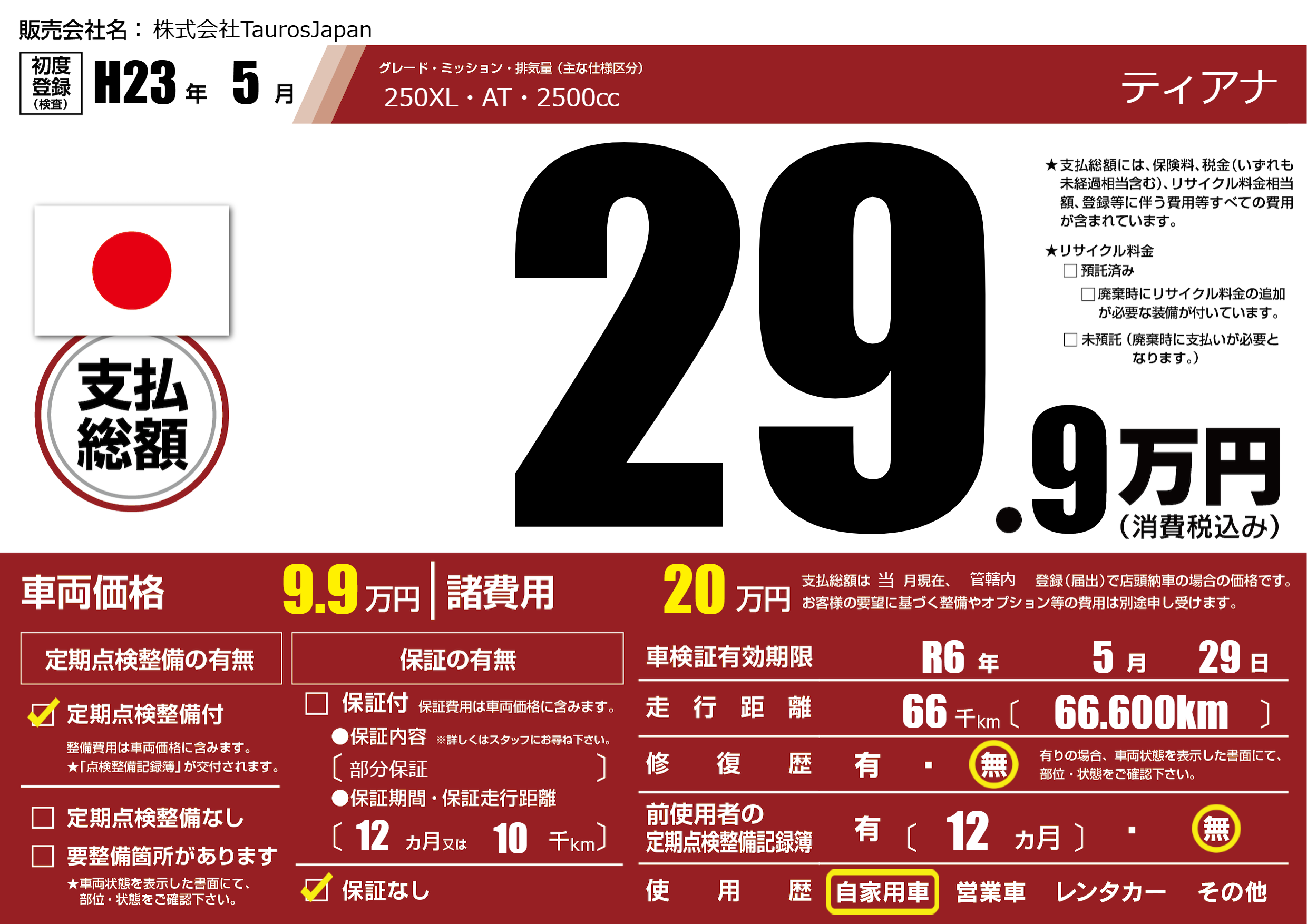 なし | 車検制限 | R6年5月29月 |