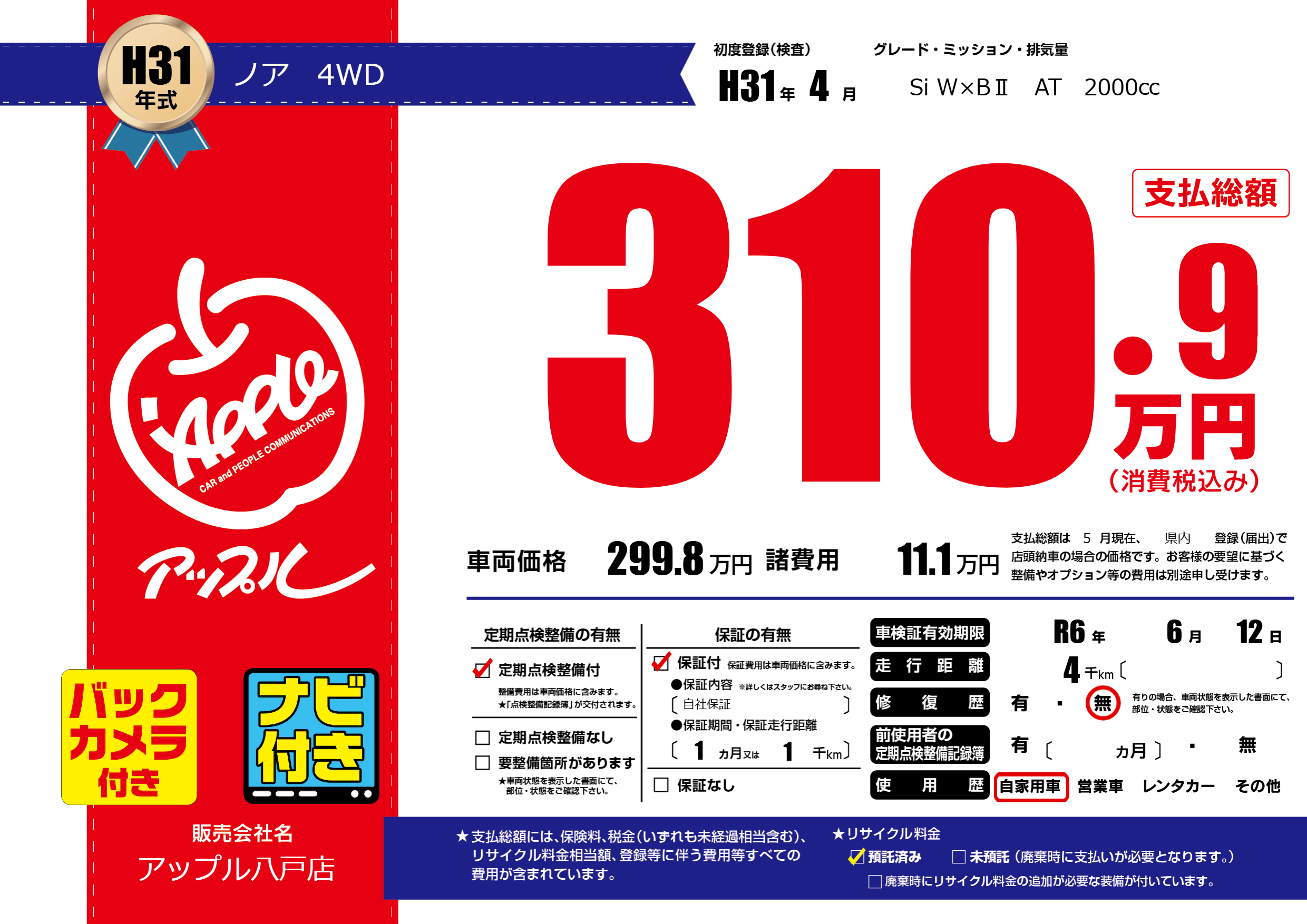 なし | 車検制限 | R6年6月12月 |