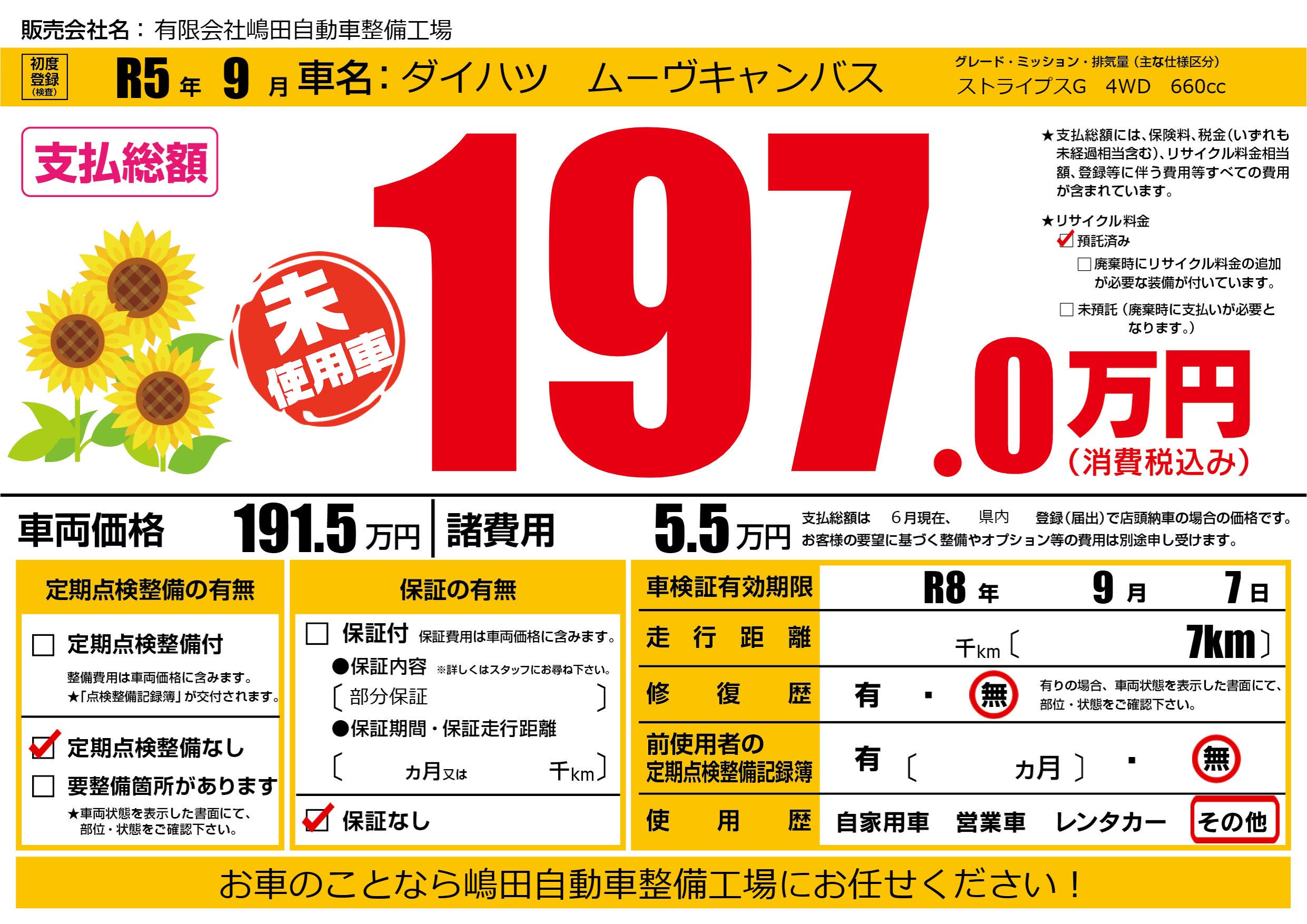 | 走行キロ | - | 初年度登録 | R5年9月 |
