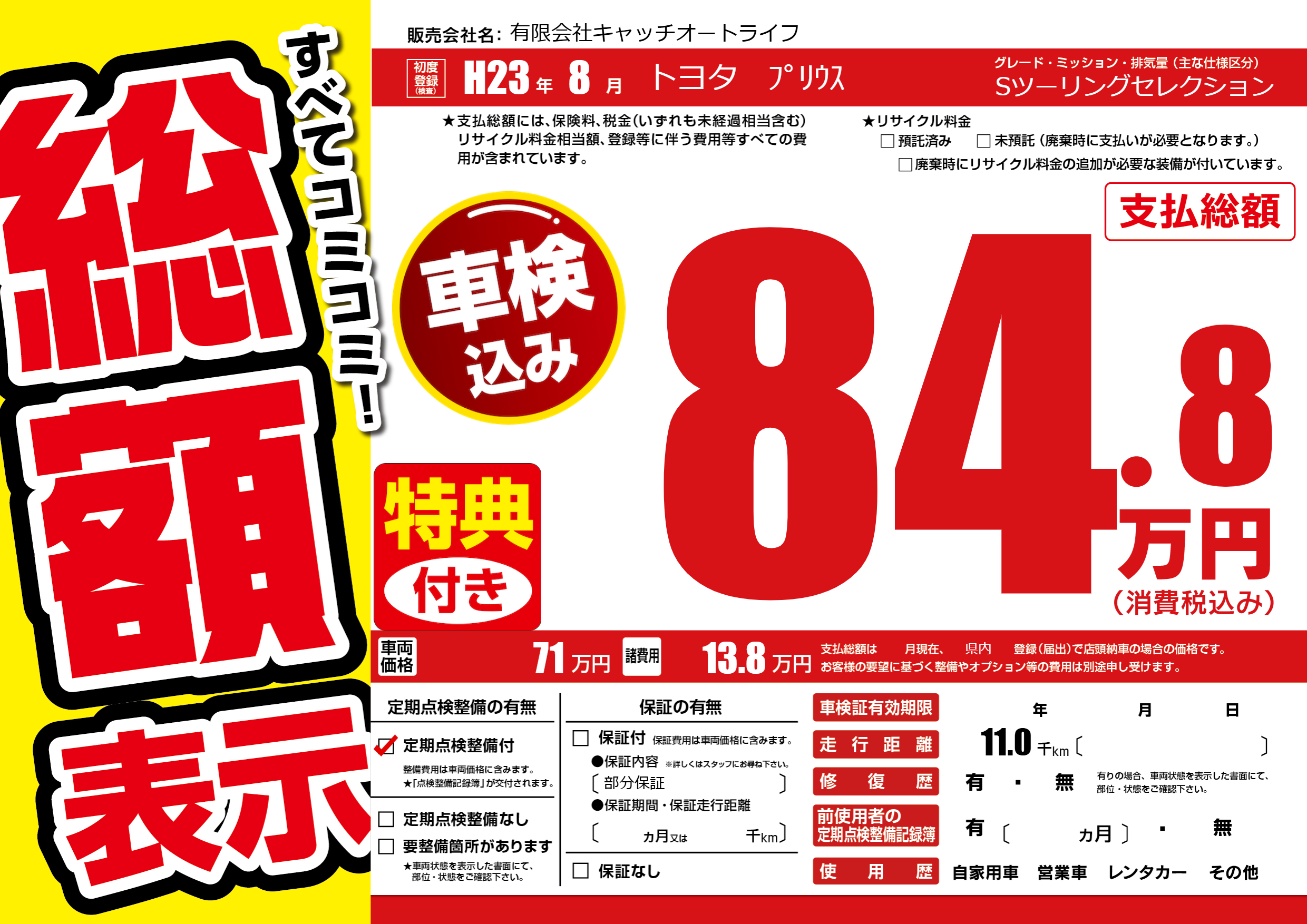 | 定期点検整備 | 定期点検整備あり | ||