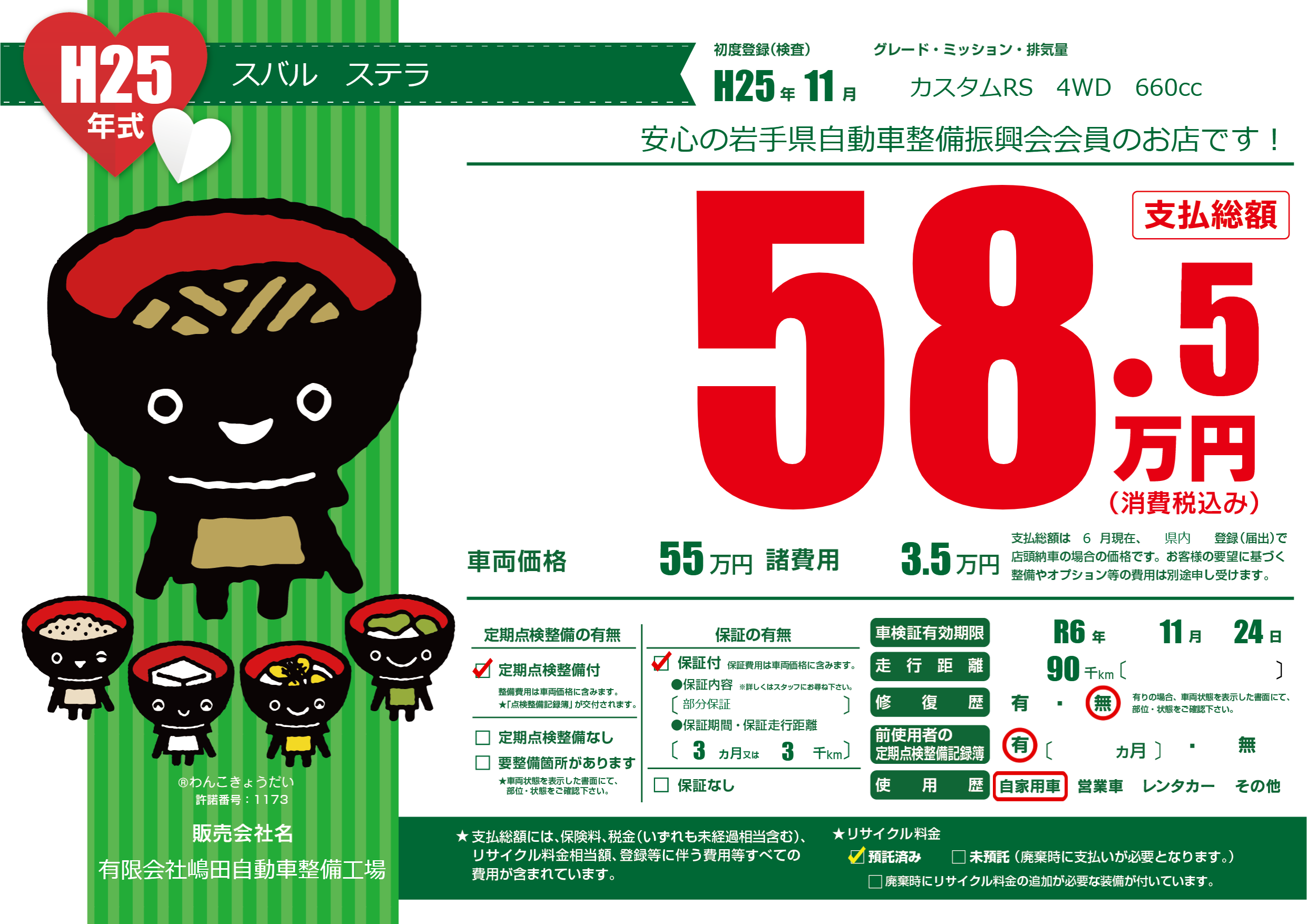 有限会社嶋田自動車整備工場の展示車をすべて見る