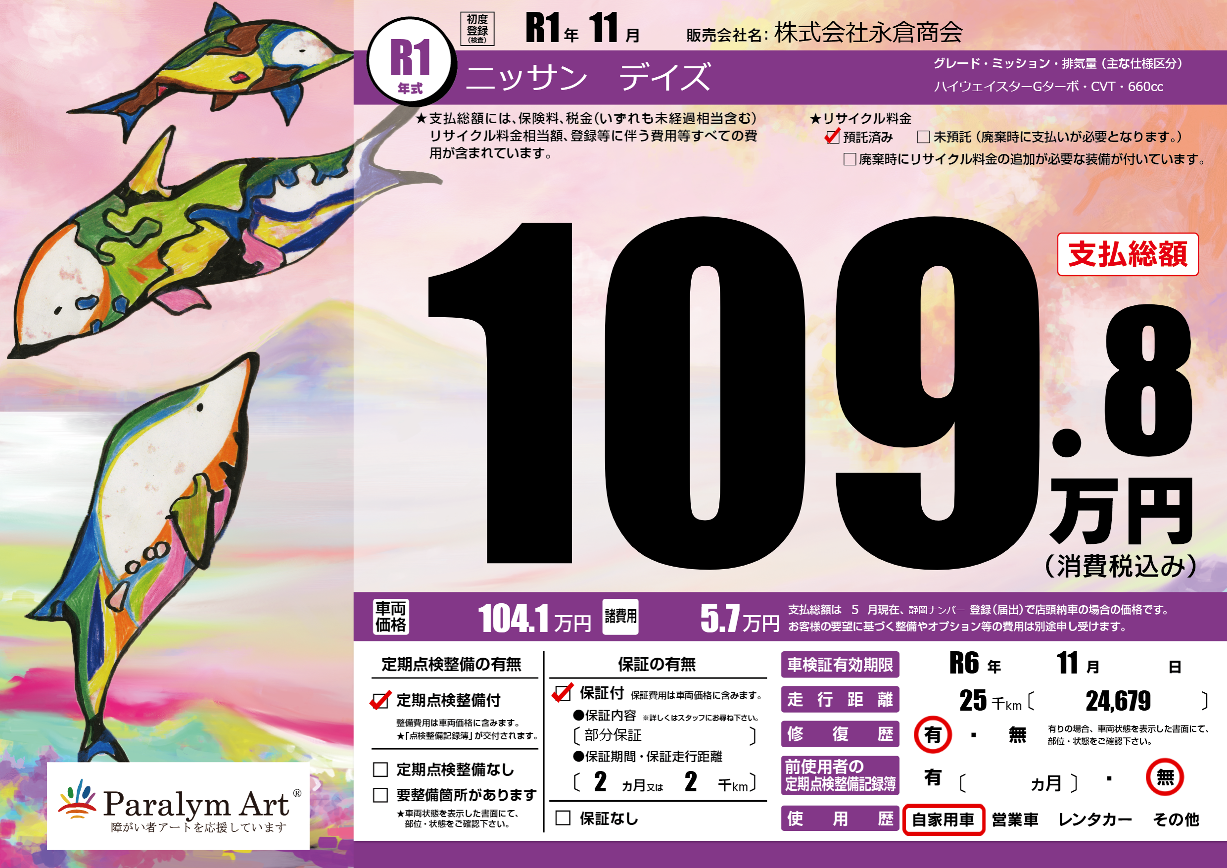 | 車名 | ニッサン デイズ | グレード ミッション 排気量 |