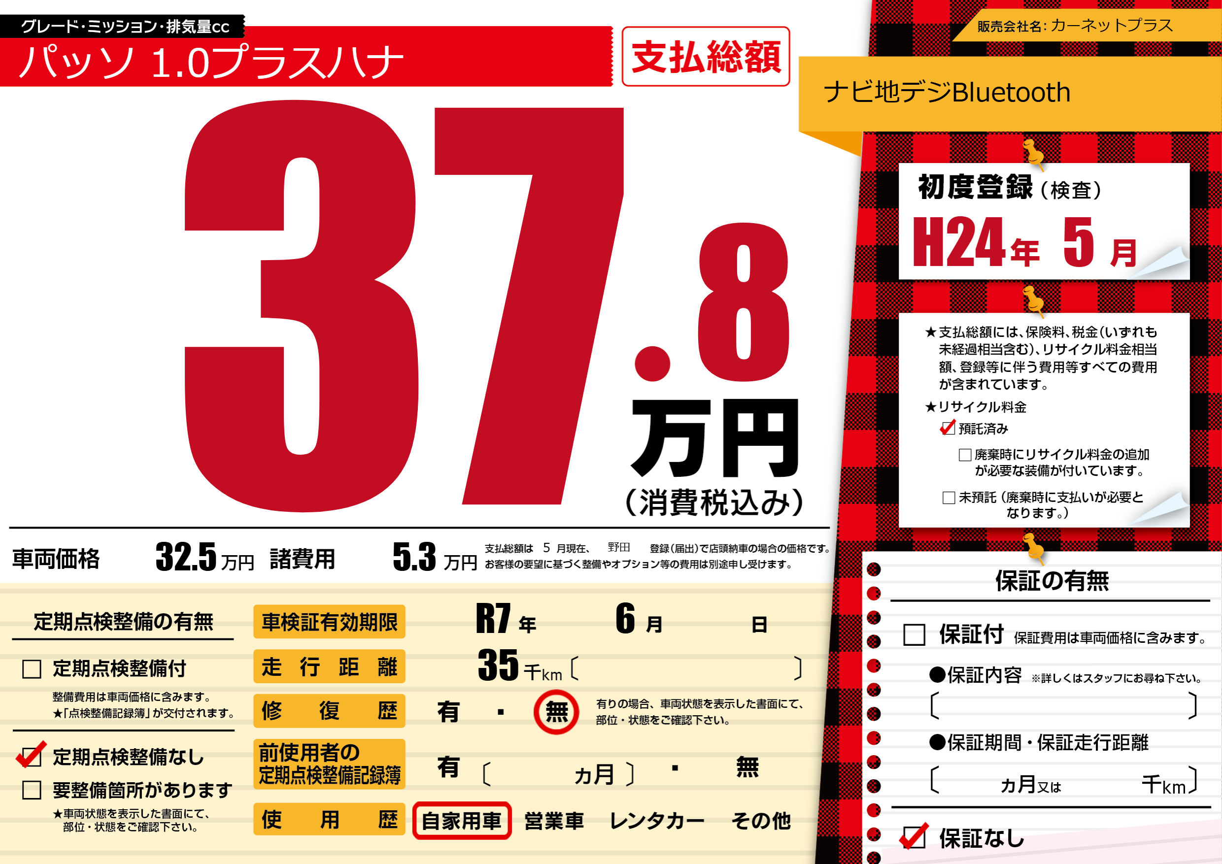 | 走行キロ | 3.5万km | 初年度登録 | H24年5月 |