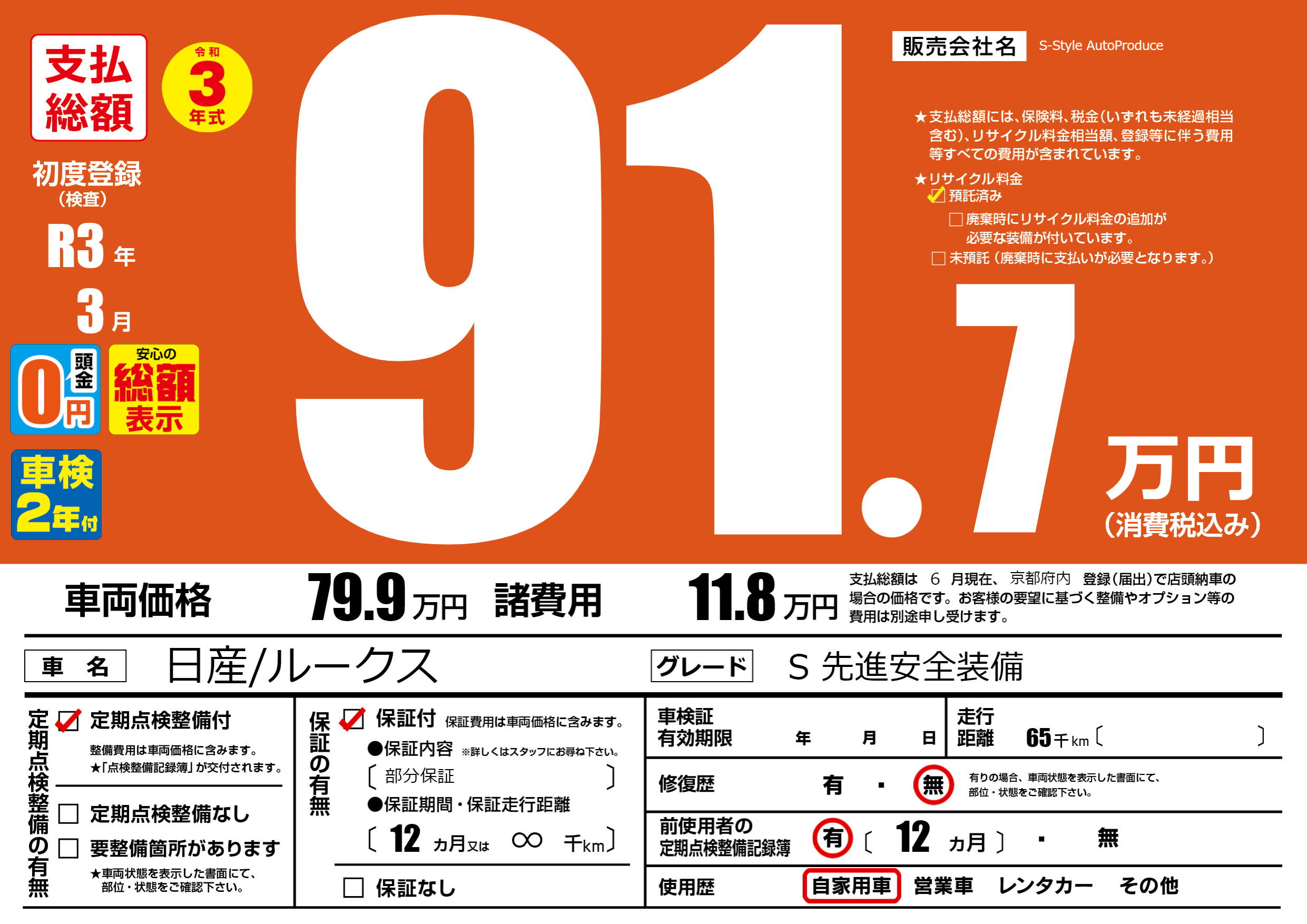 | 初年度登録 | R3年3月 | ||