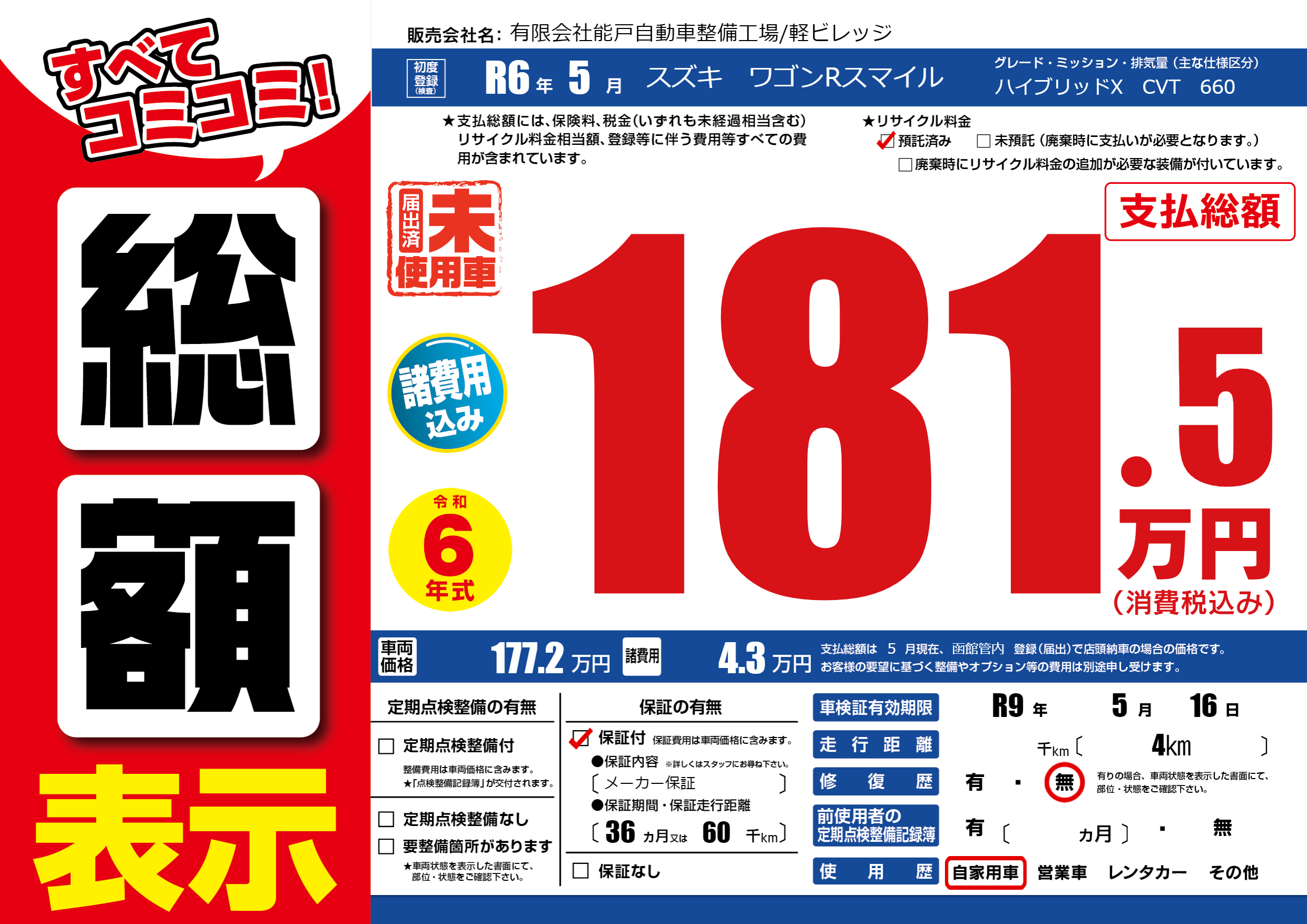 なし | 車検制限 | R9年5月16月 |