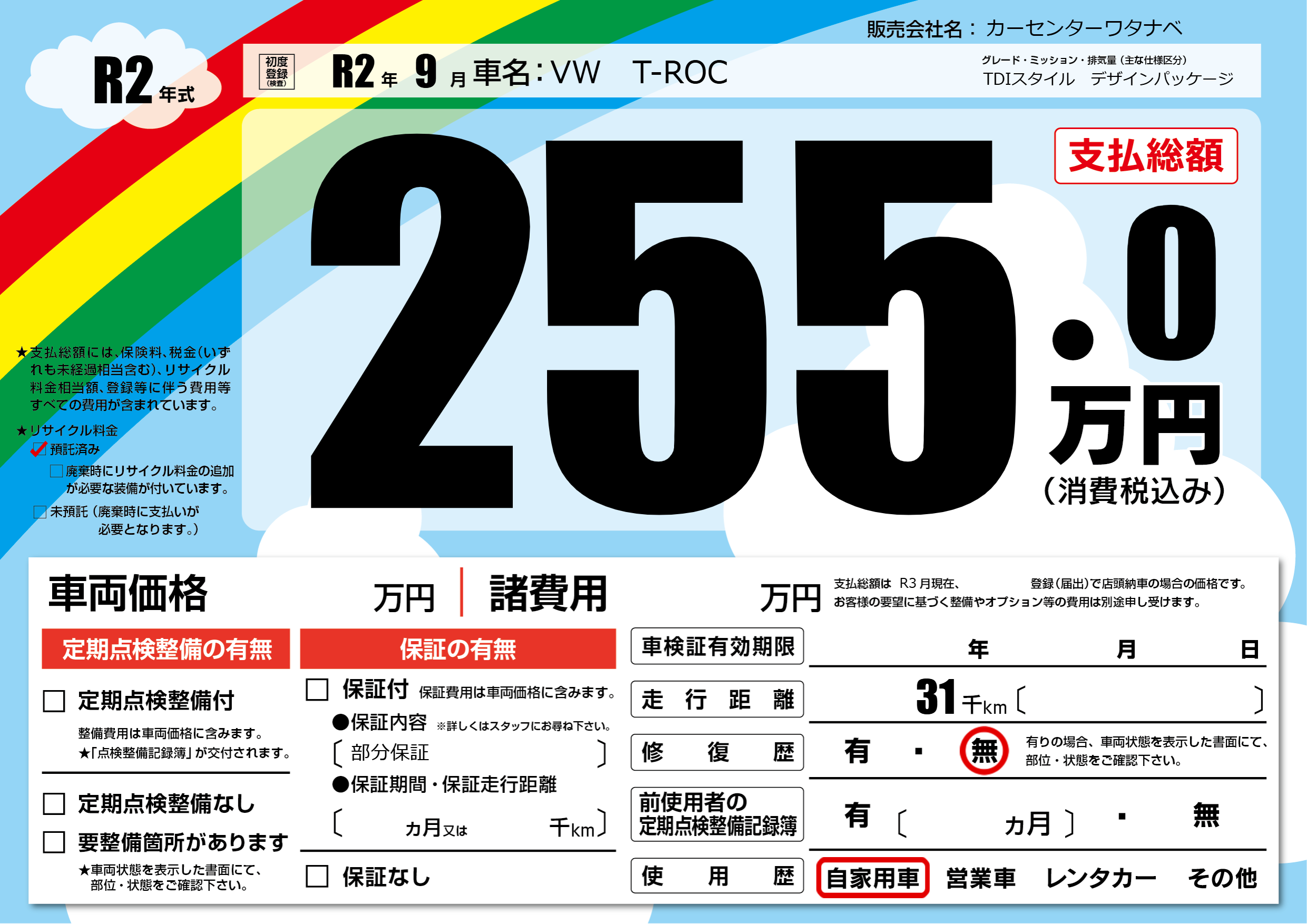 | 車名 | VW T-ROC | グレード ミッション 排気量 |