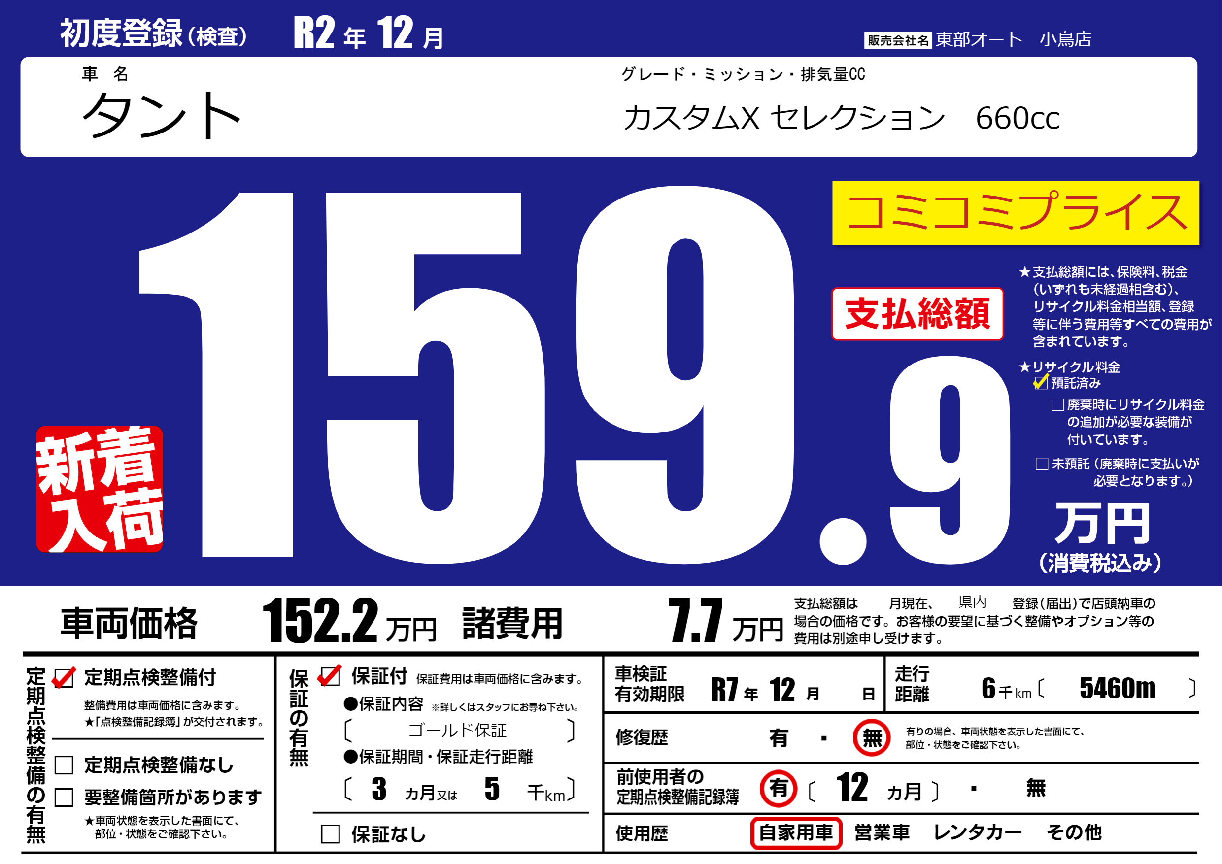 | 走行キロ | 0.6万km | 初年度登録 | R2年12月 |
