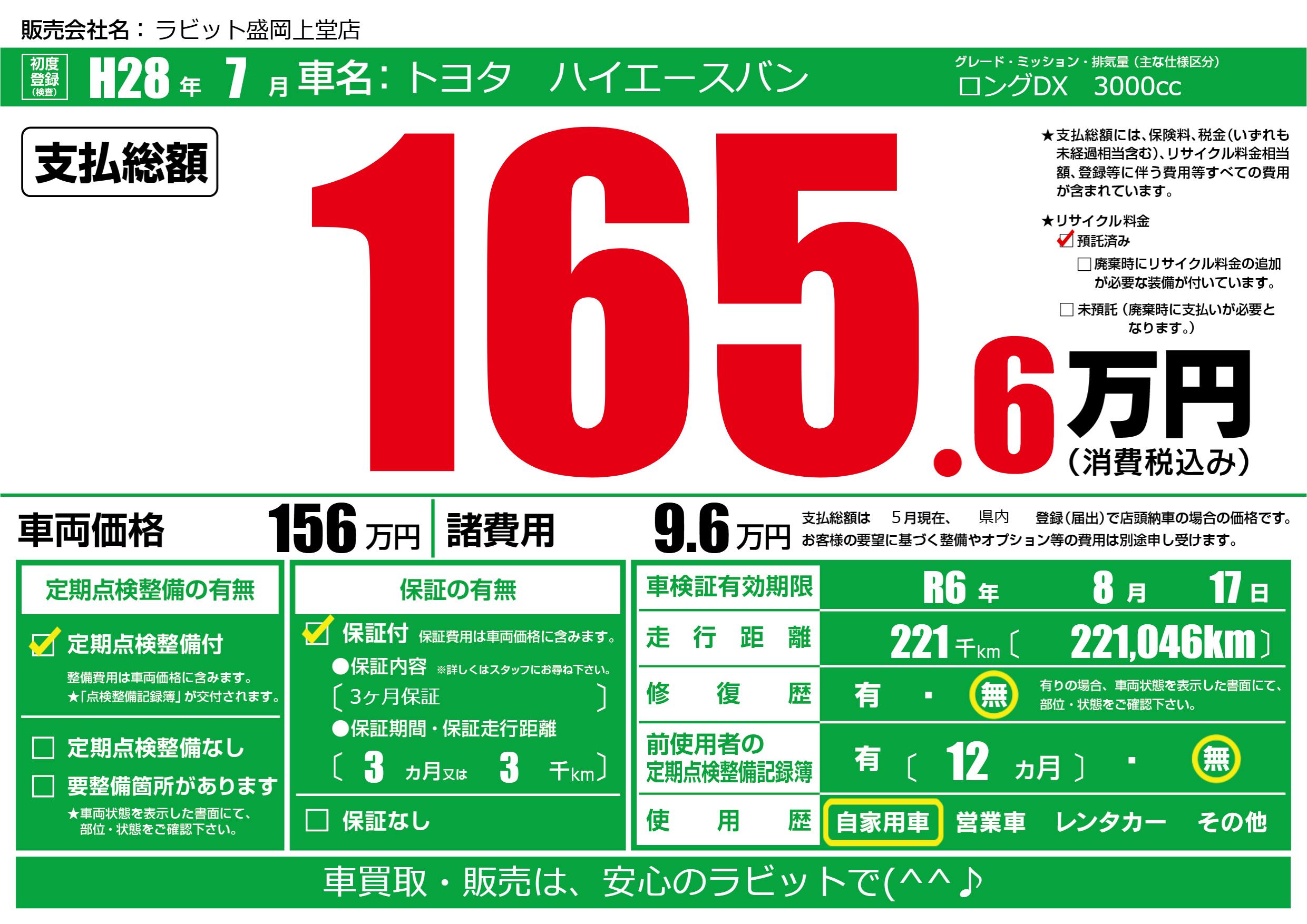 なし | 車検制限 | R6年8月17月 |