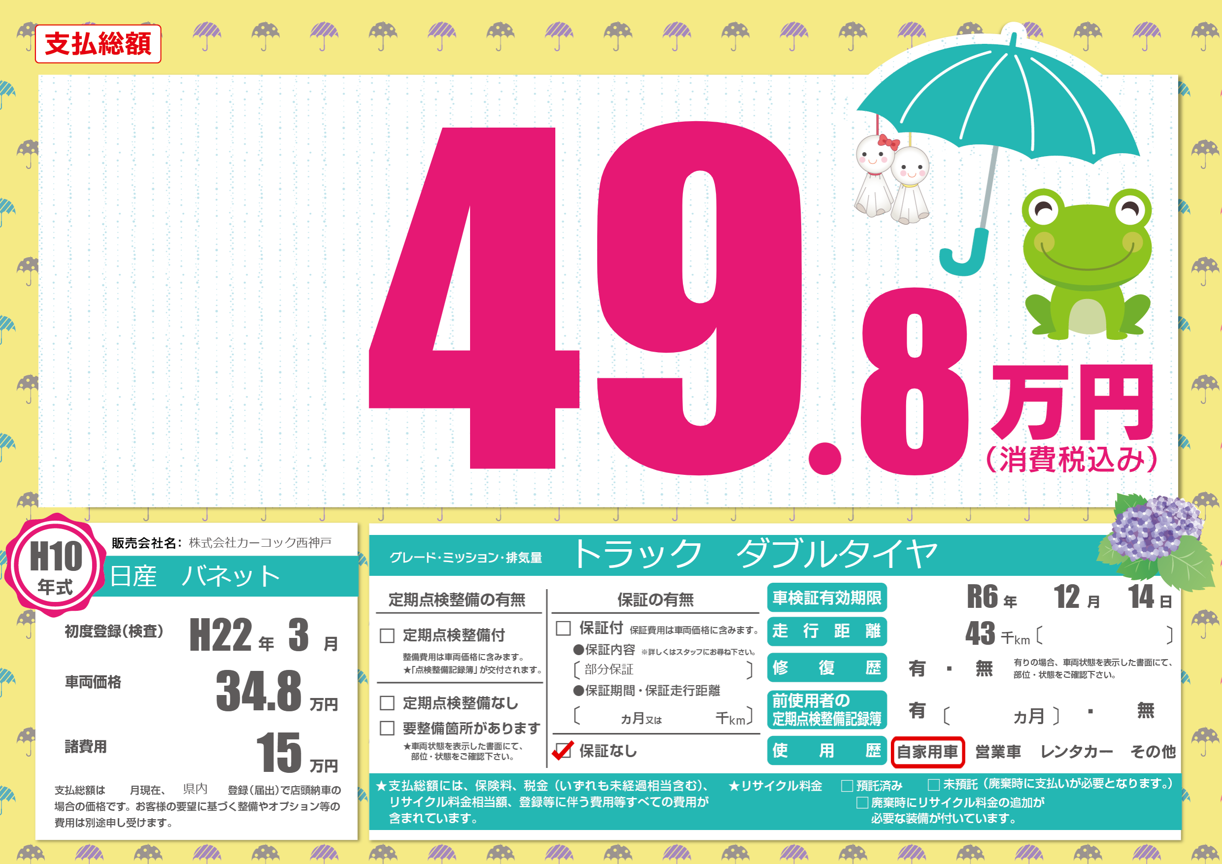 | 車名 | 日産 バネット | グレード ミッション 排気量 |