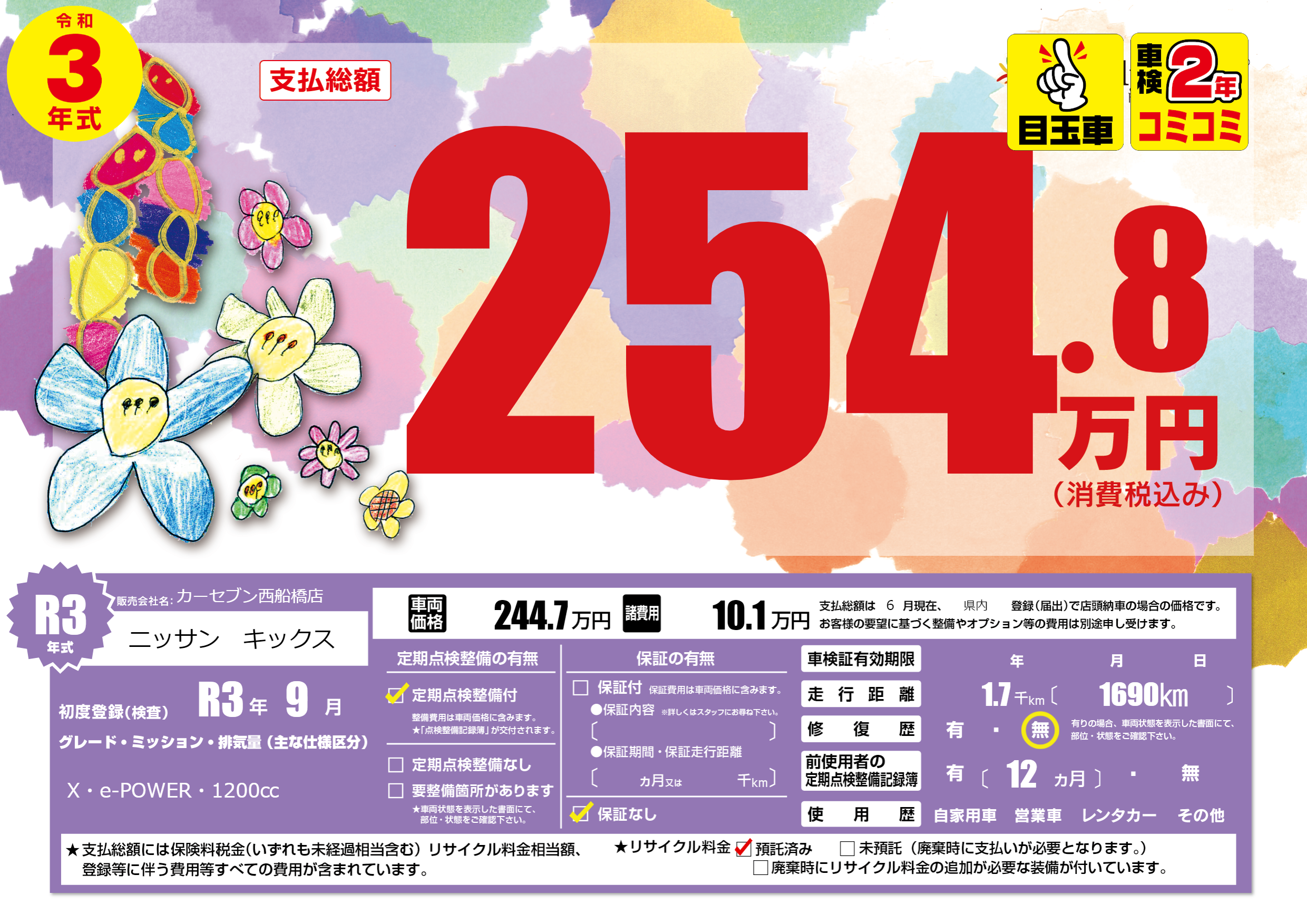 | 初年度登録 | R3年9月 | ||