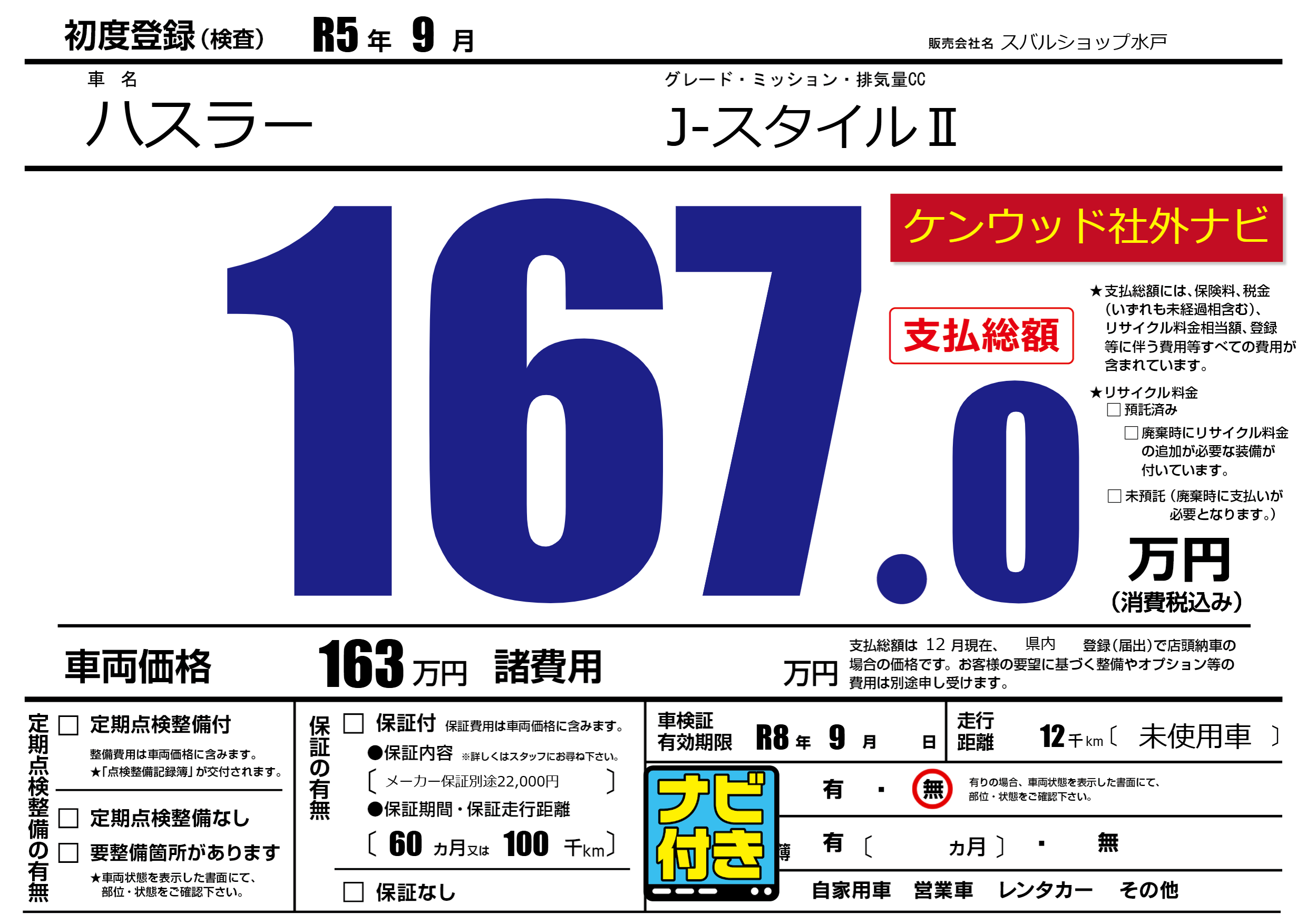 なし | 車検制限 | R8年9月---月 |