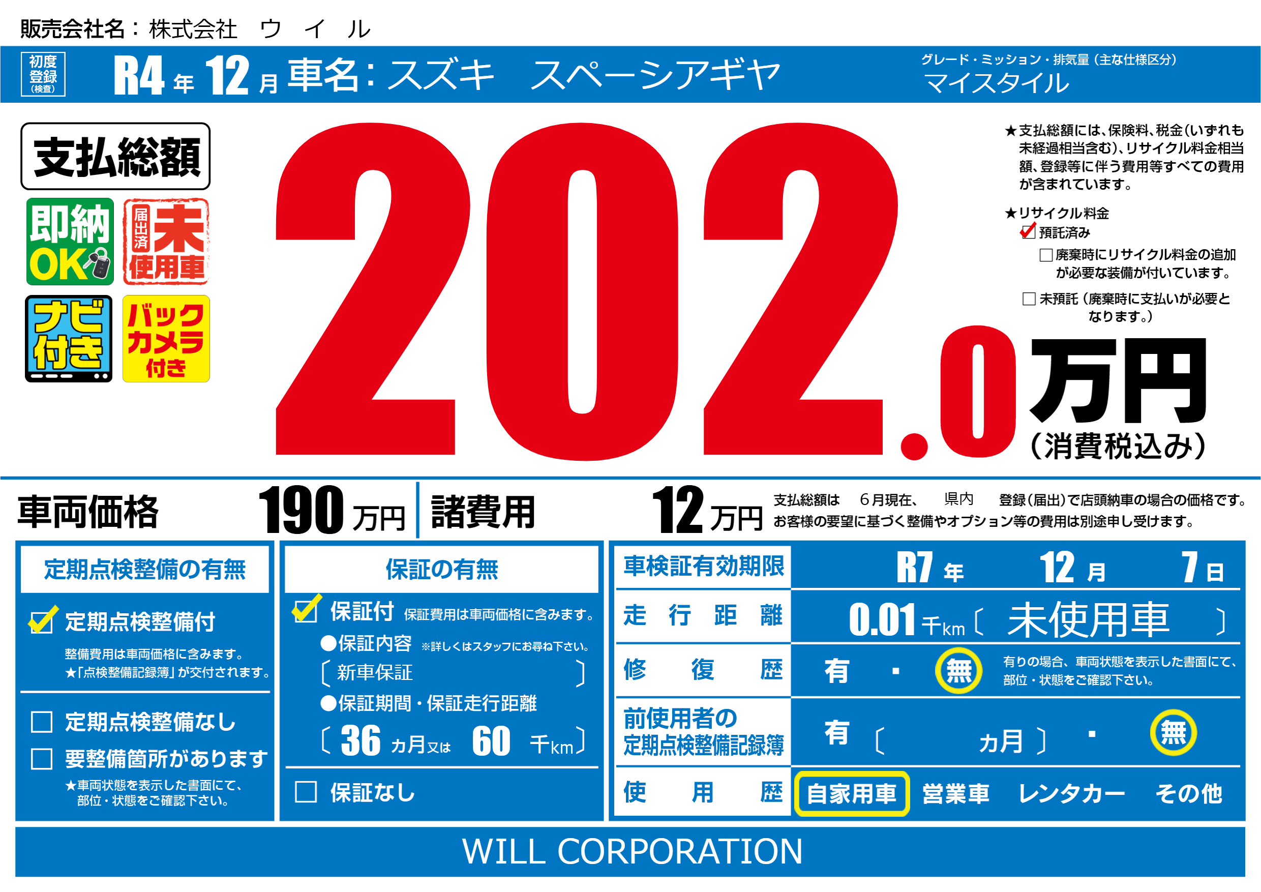 | 走行キロ | - | 初年度登録 | R4年12月 |