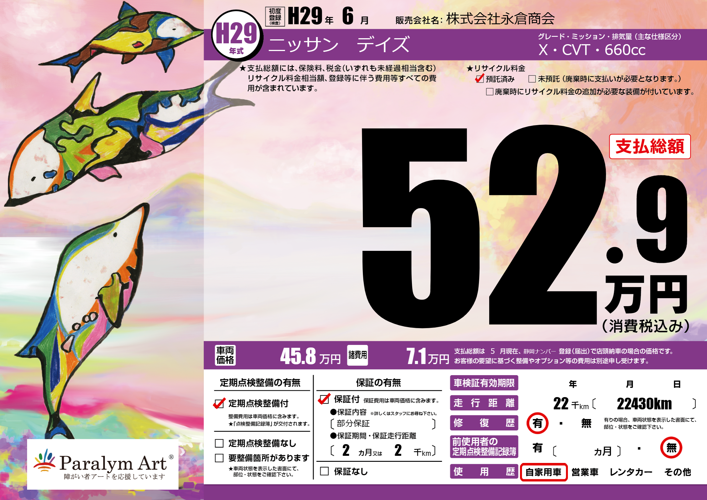 | 走行キロ | 2.2万km | 初年度登録 | H29年6月 |