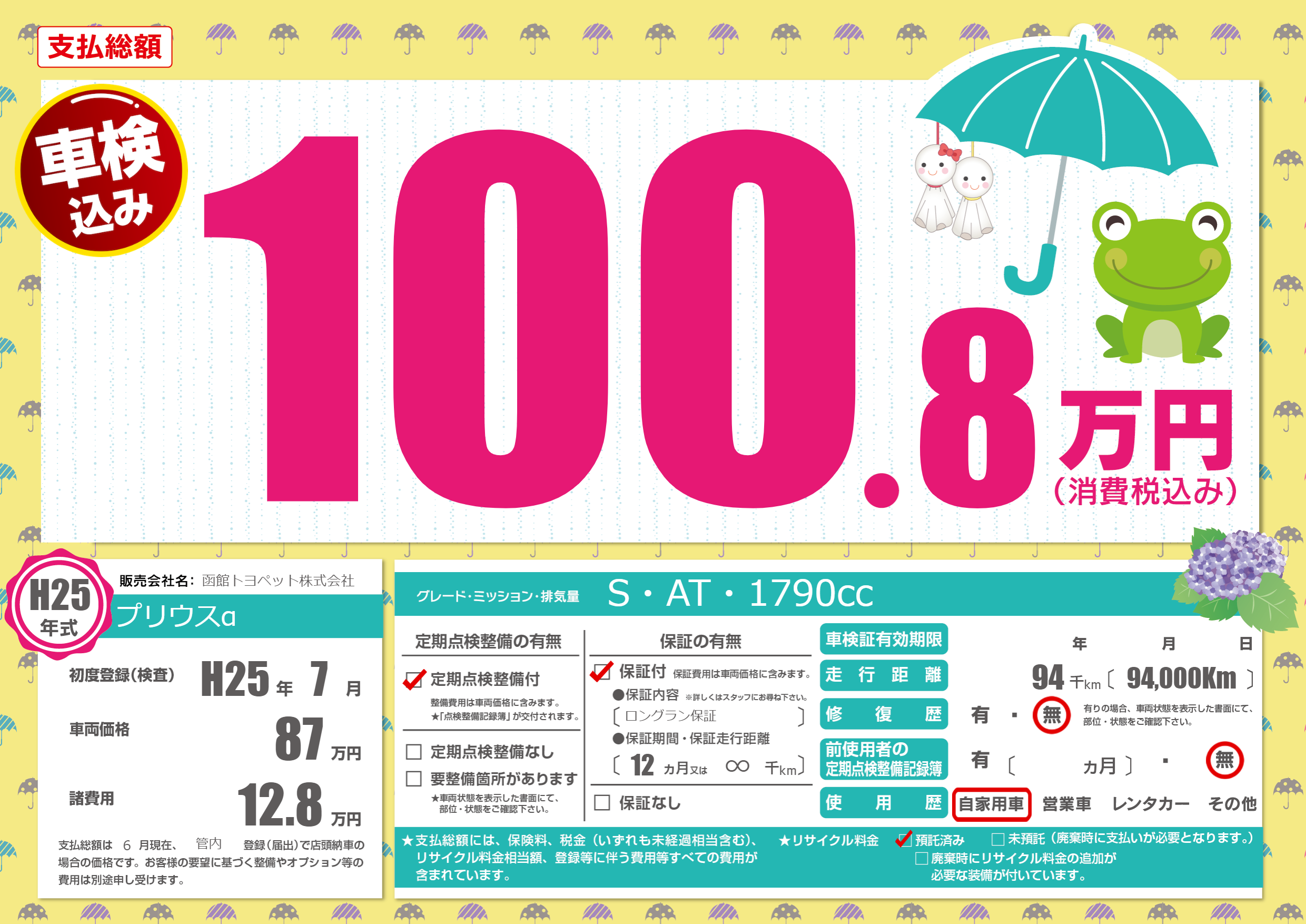 | 車名 | プリウスα | グレード ミッション 排気量 |