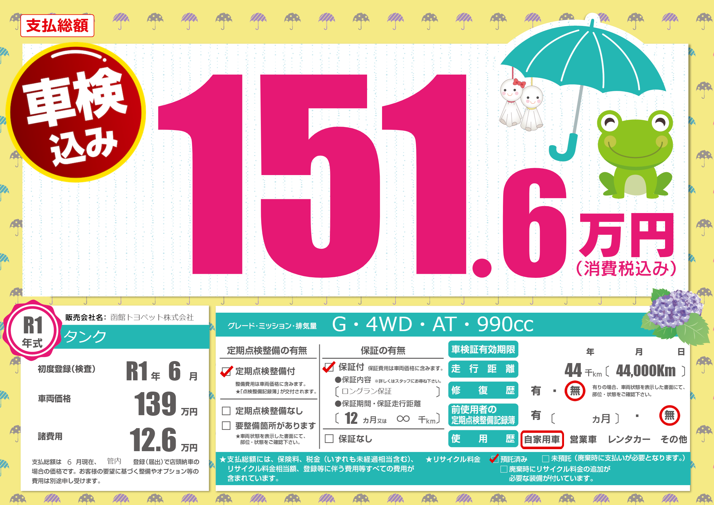 | 走行キロ | 4.4万km | 初年度登録 | R1年6月 |