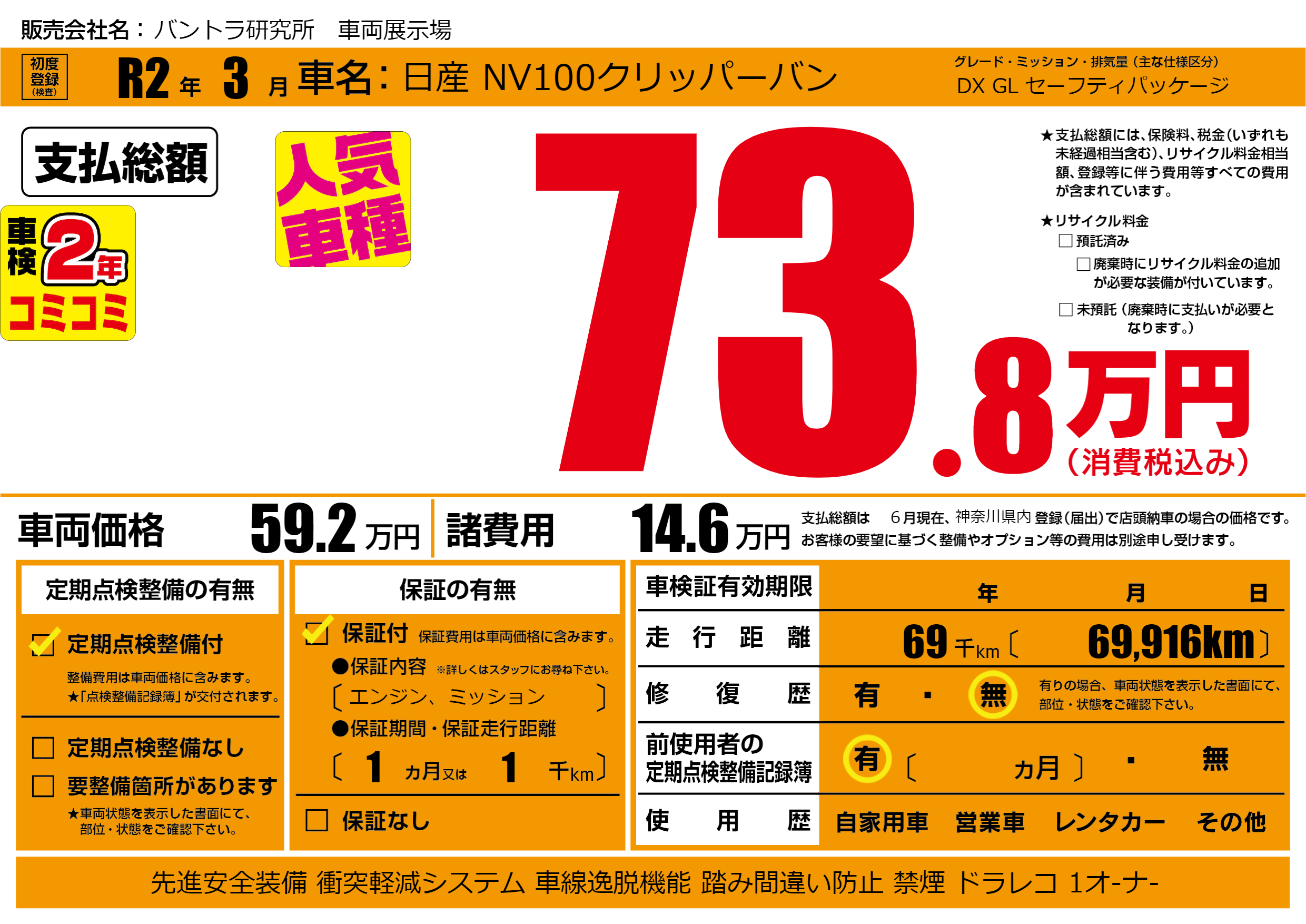 | 定期点検整備 | 定期点検整備あり | ||