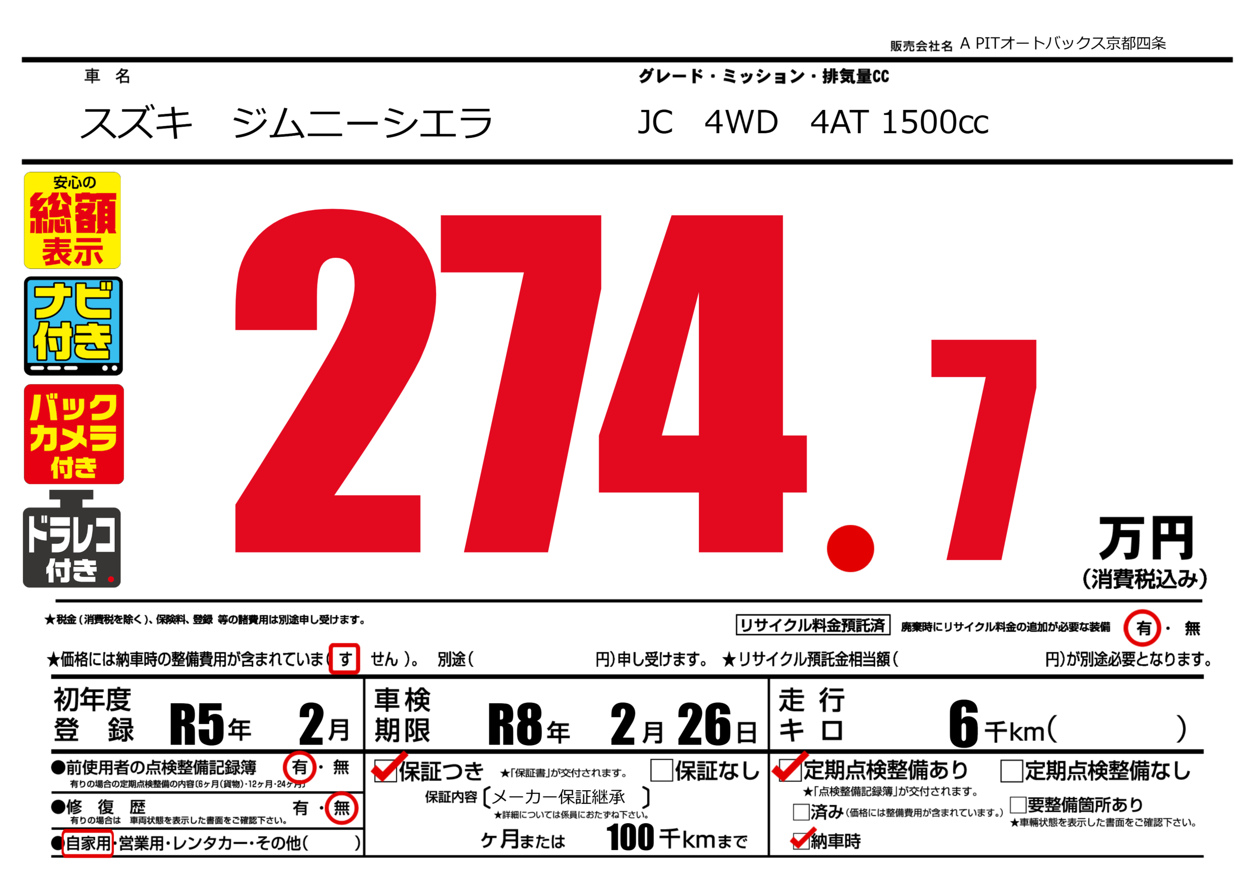 | 車検制限 | R8年 2月 26日 | ||