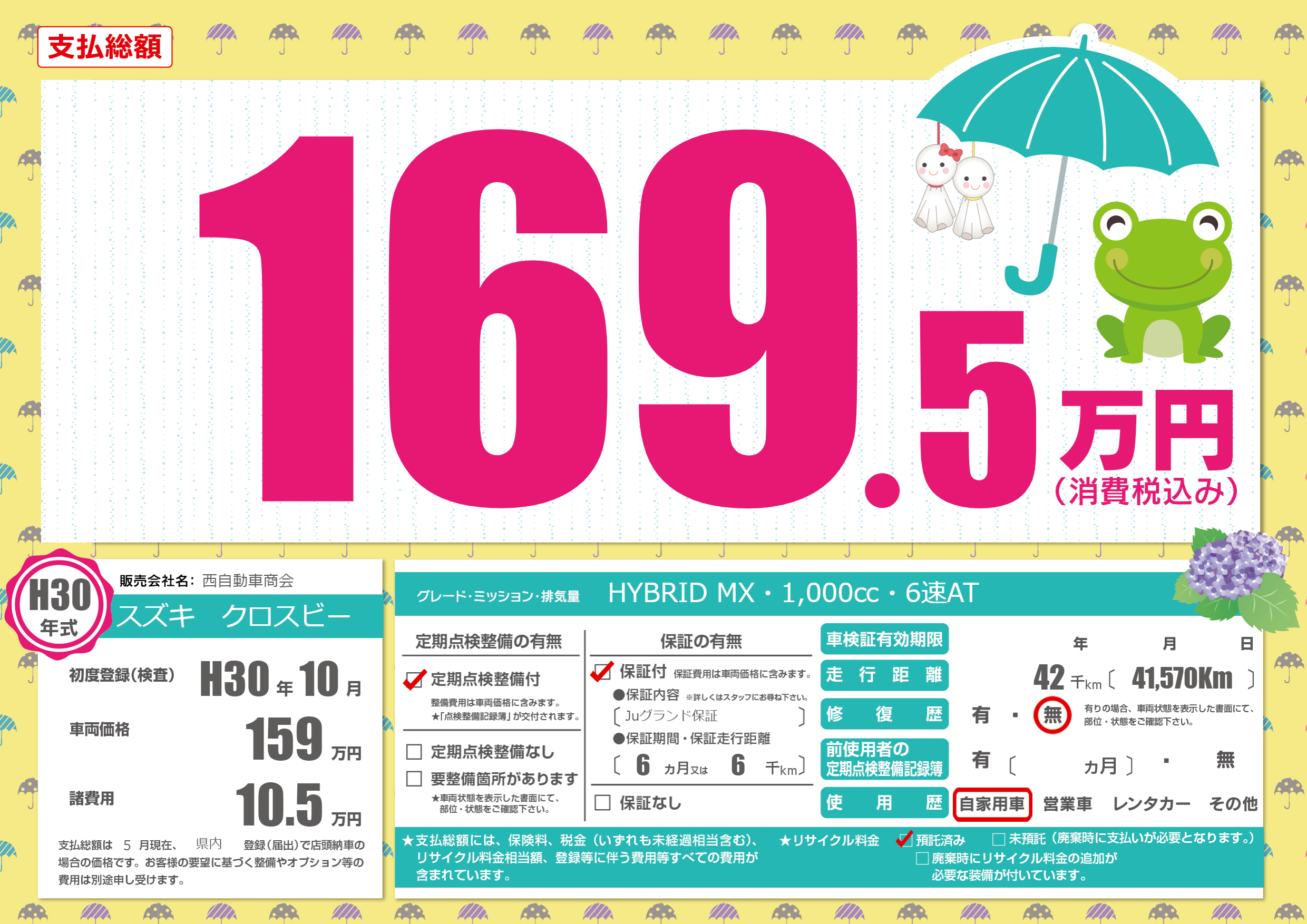 保証付き 保証内容(Juグランド保証) 6ヶ月または6千km |