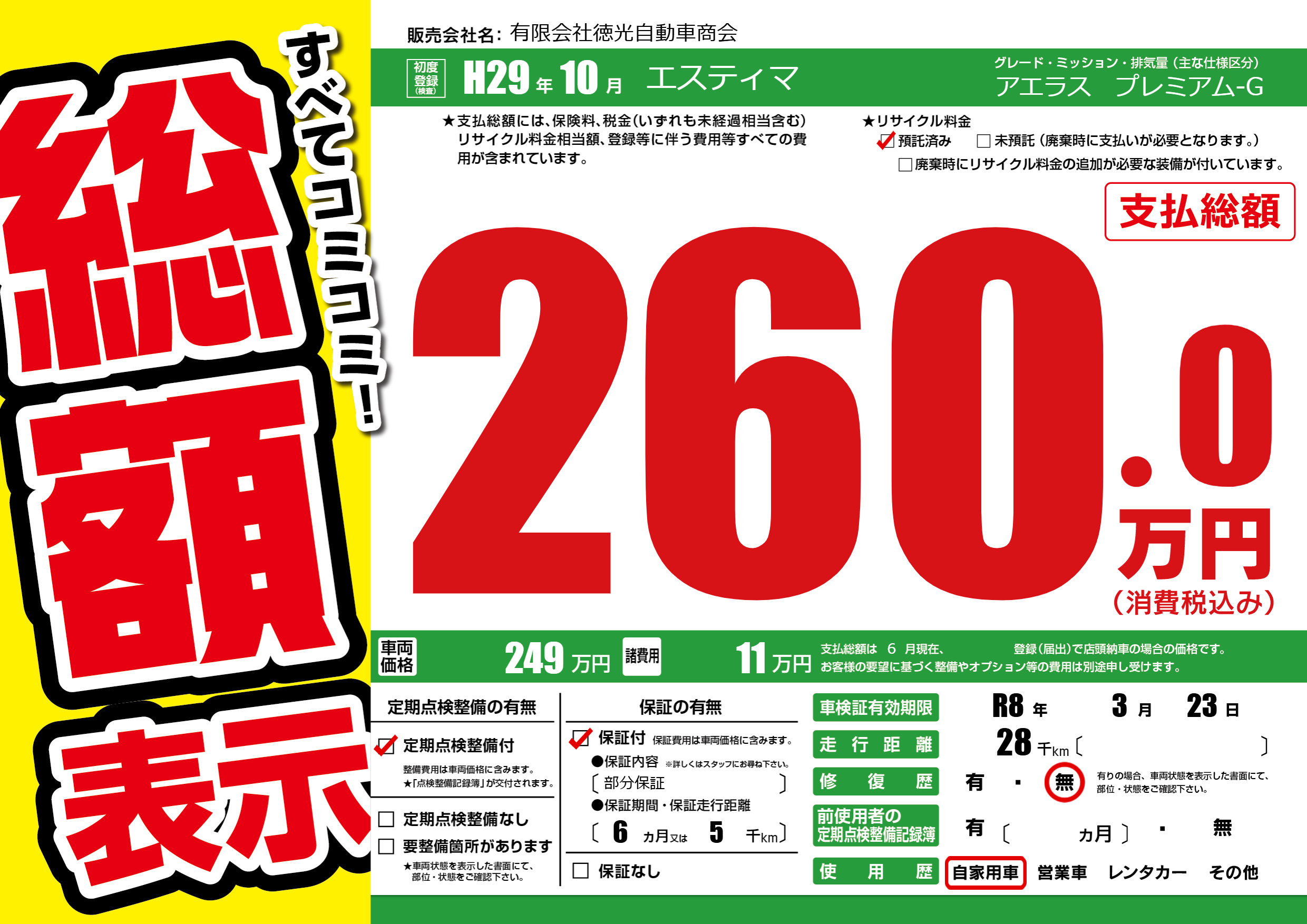 | 車検制限 | R8年 3月 23日 | ||