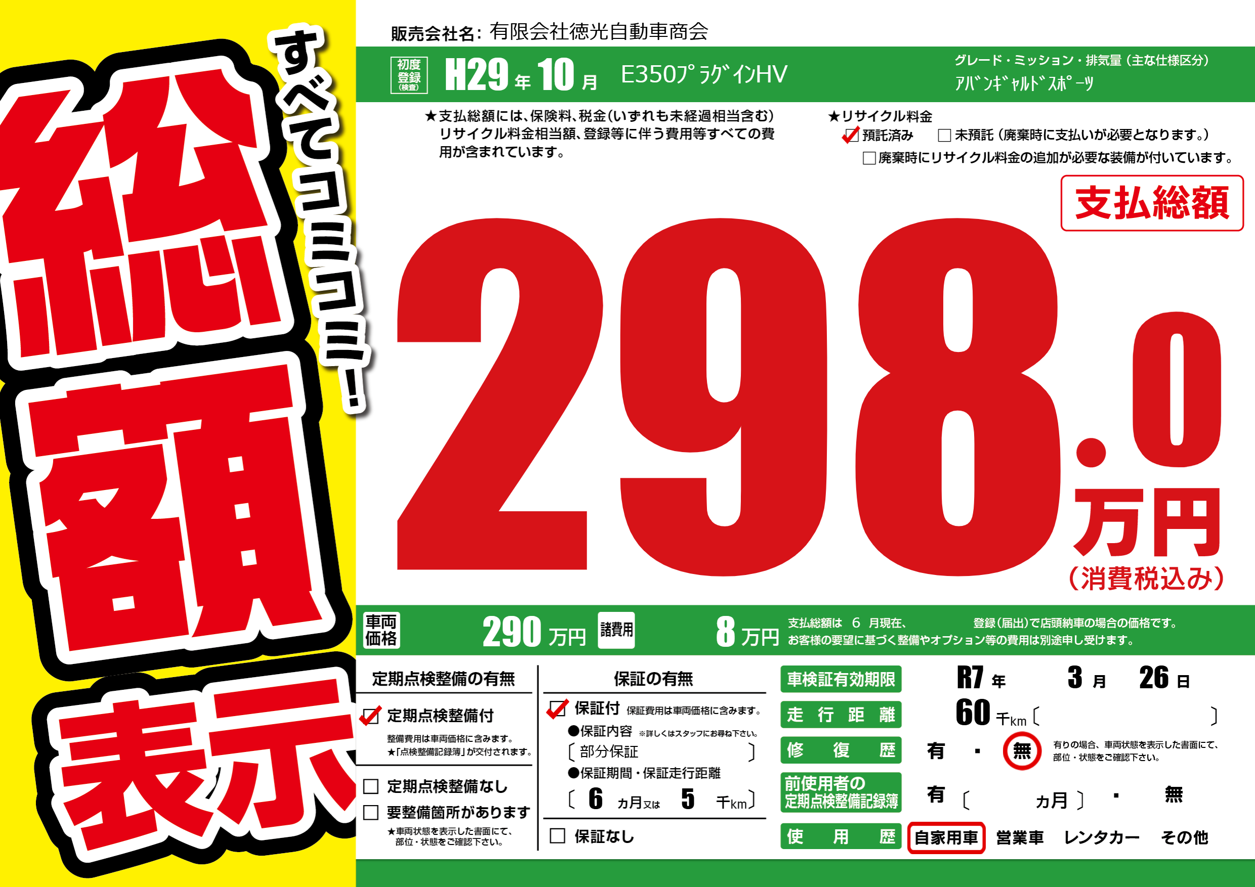 | 車名 | E350プラグインHV | グレード ミッション 排気量 |