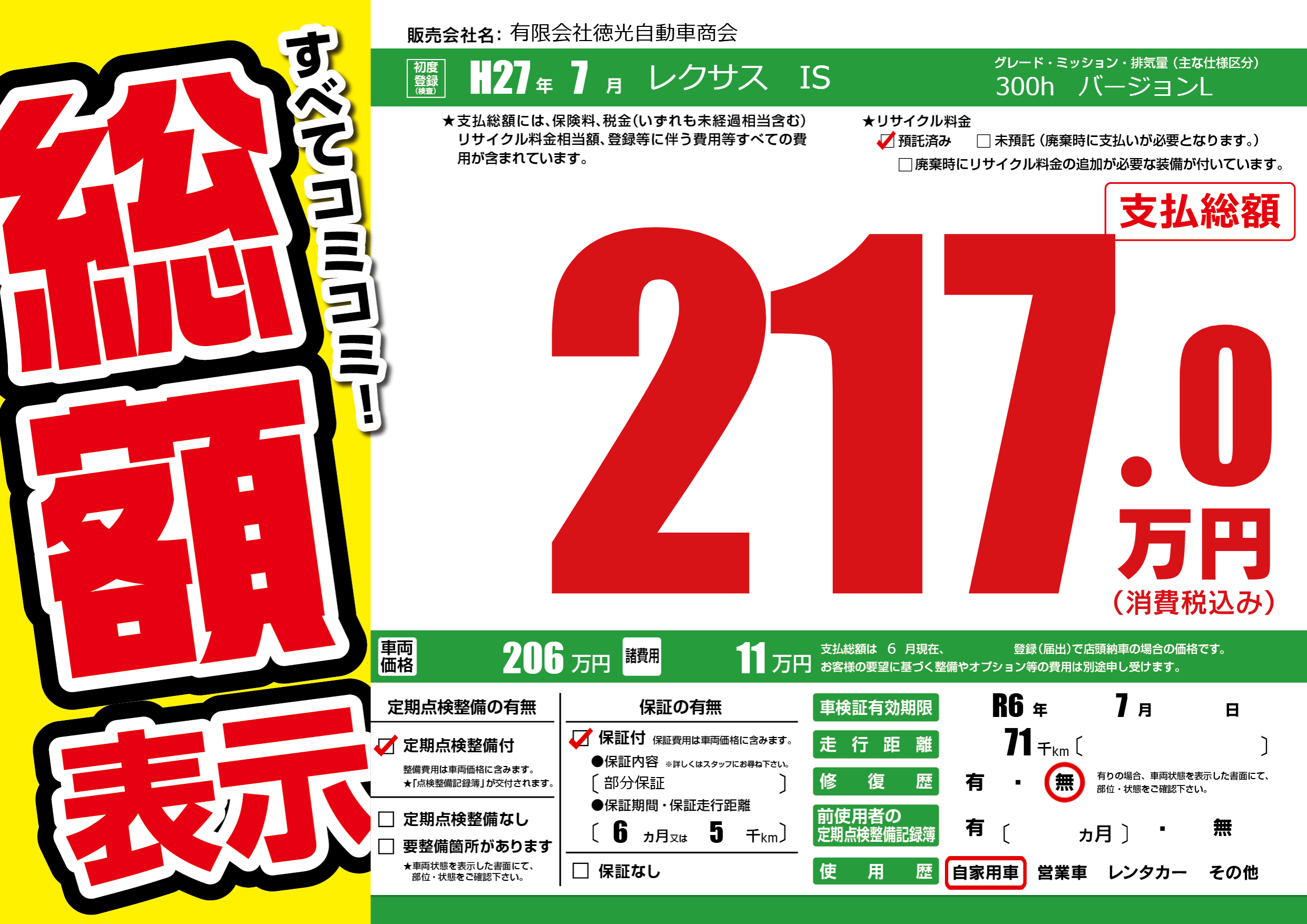 | 車検制限 | R6年 7月 - 日 | ||