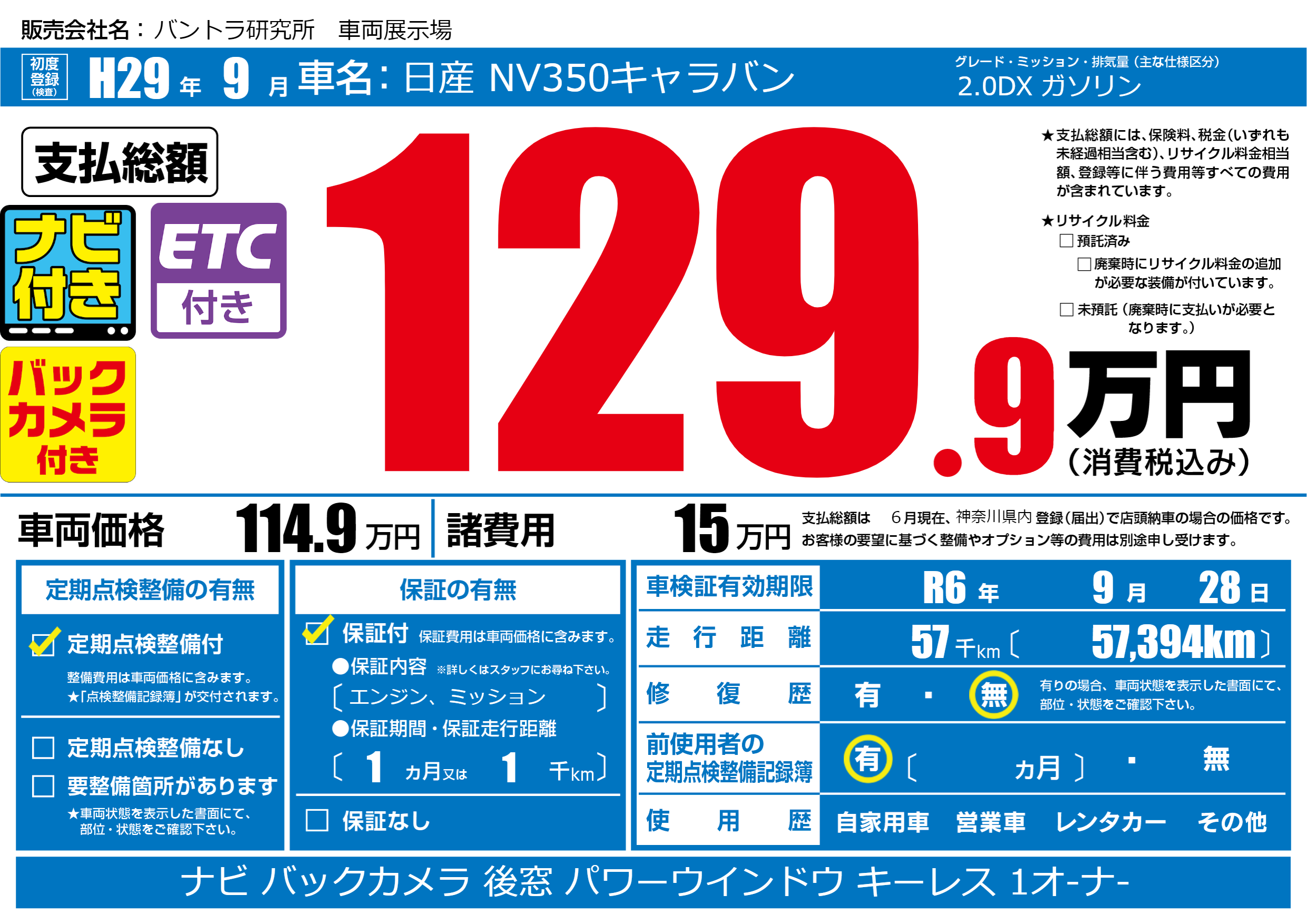 なし | 車検制限 | R6年9月28月 |