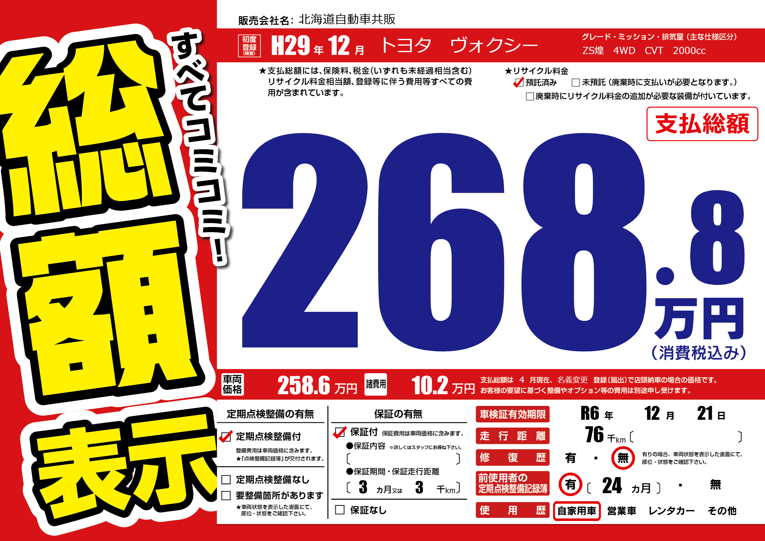 | 車検制限 | R6年 12月 21日 | ||