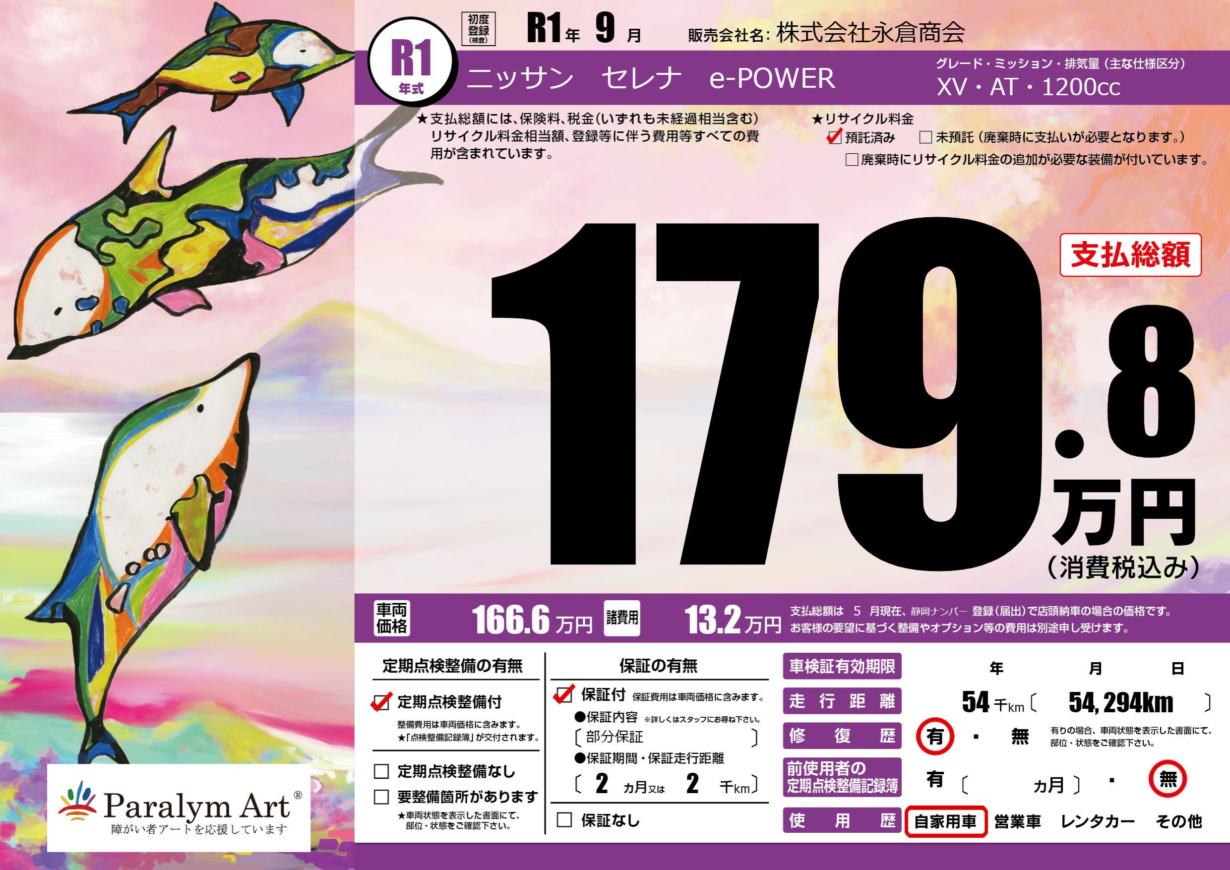 | 車名 | ニッサン セレナ e-POWER | グレード ミッション 排気量 |