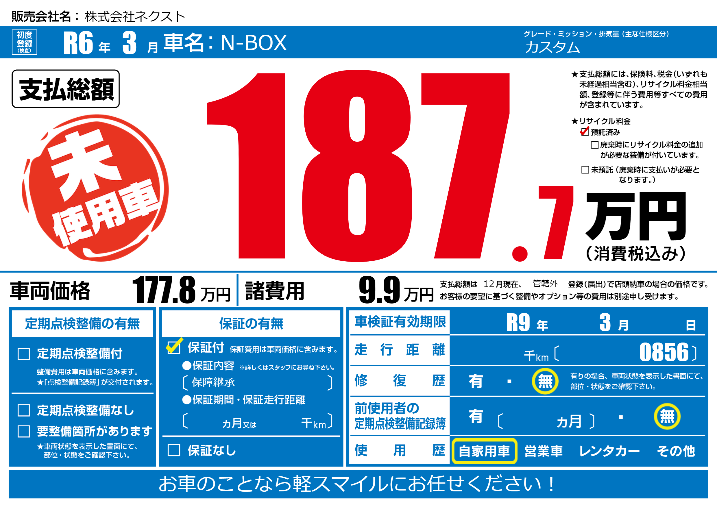 | 車検制限 | R9年 3月 - 日 | ||