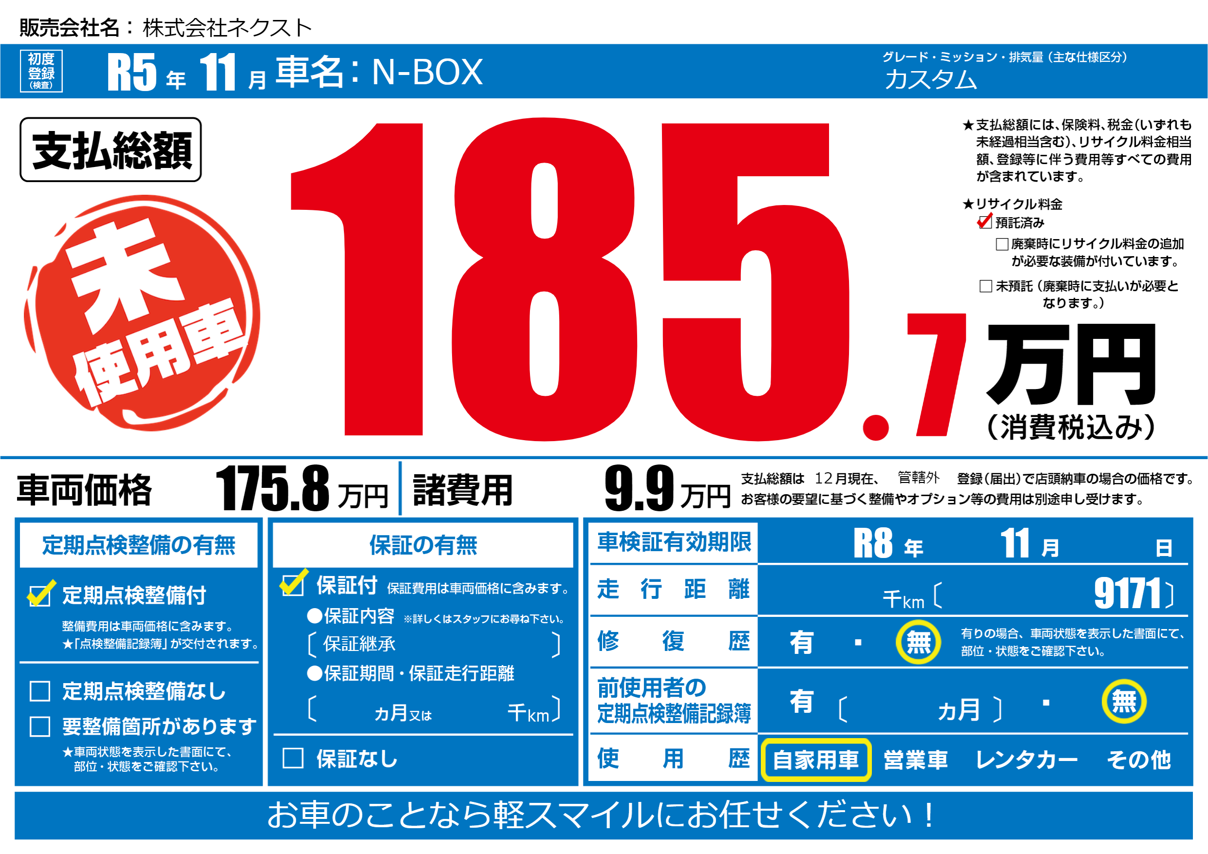 | 走行キロ | - | 初年度登録 | R5年11月 |
