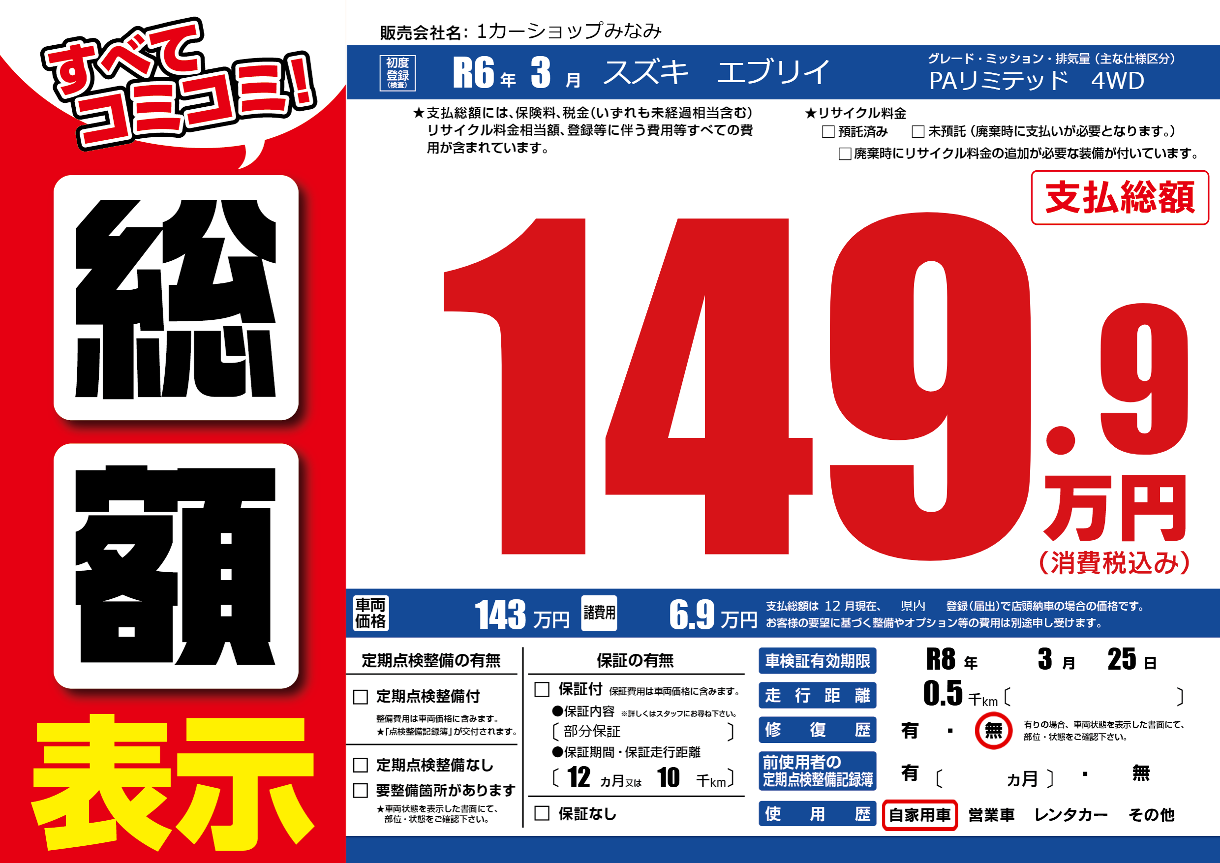 | 走行キロ | - | 初年度登録 | R6年3月 |