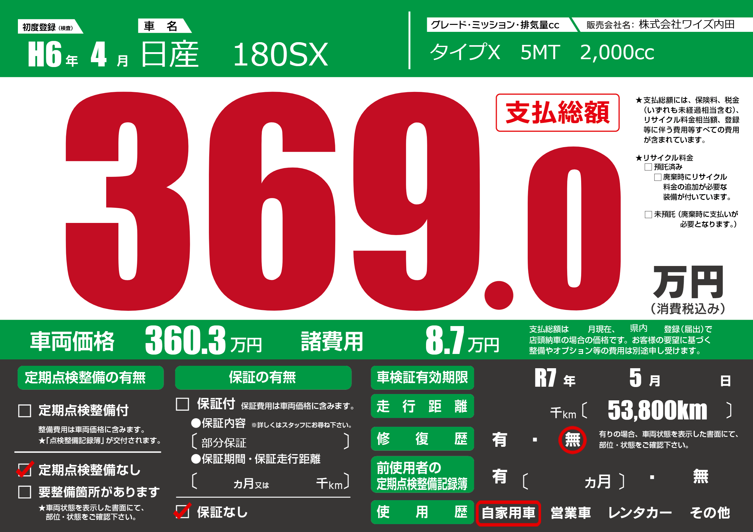 なし | 車検制限 | R7年5月---月 |
