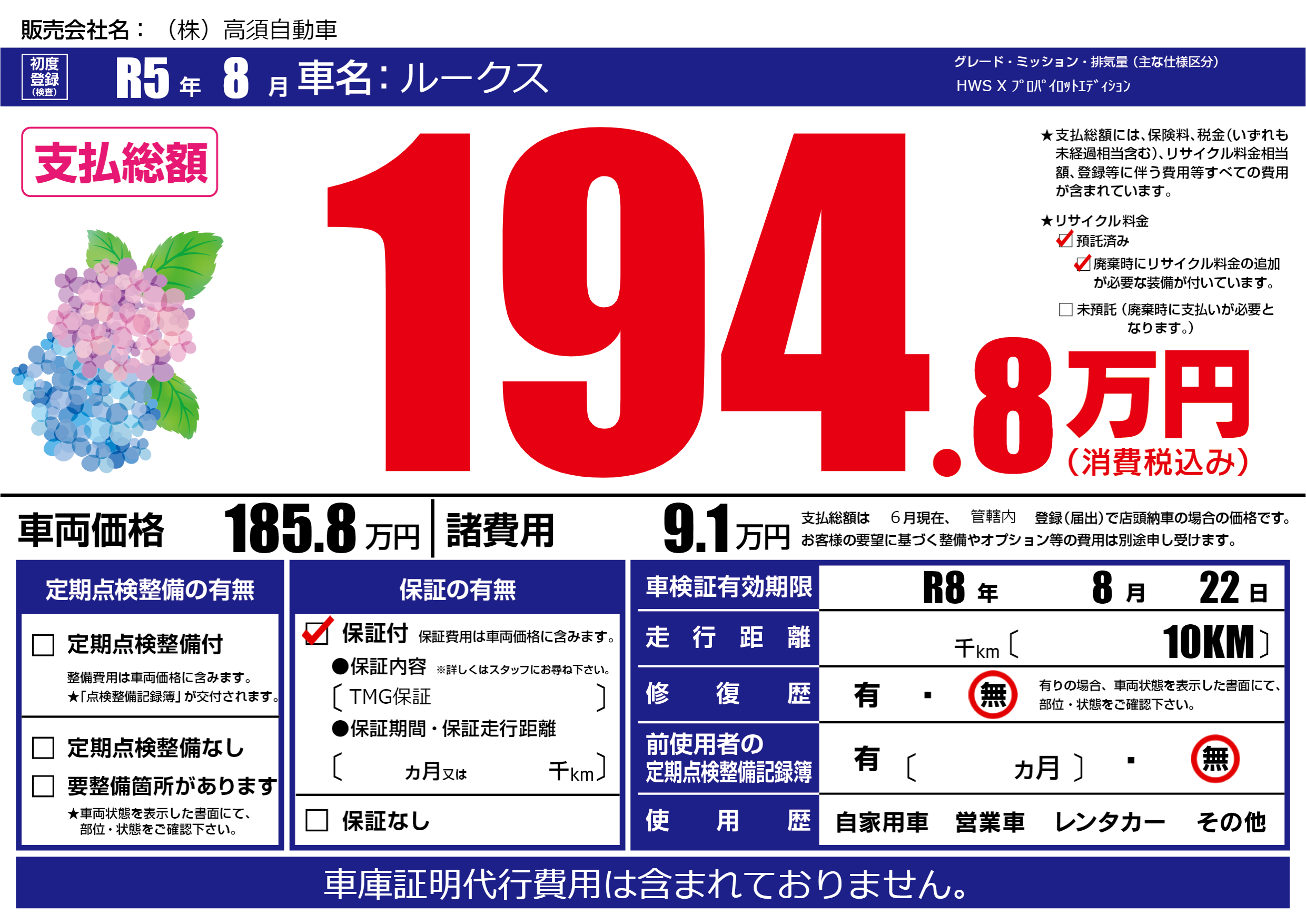 なし | 車検制限 | R8年8月22月 |