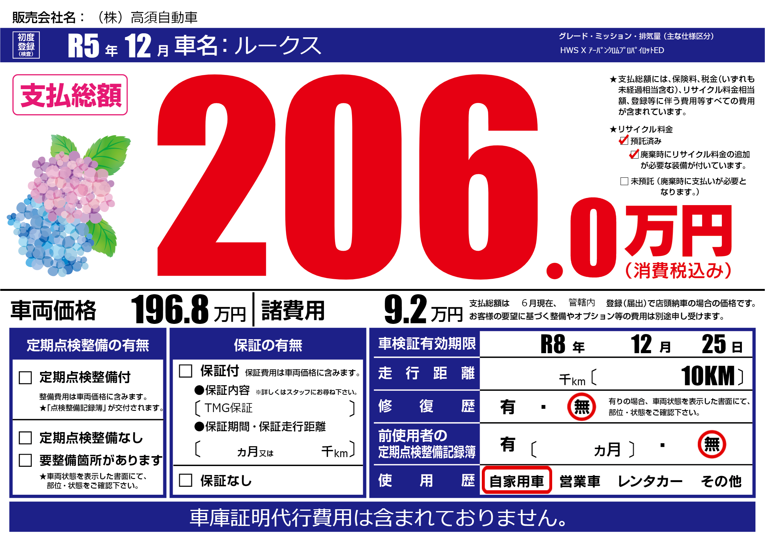 | 走行キロ | - | 初年度登録 | R5年12月 |