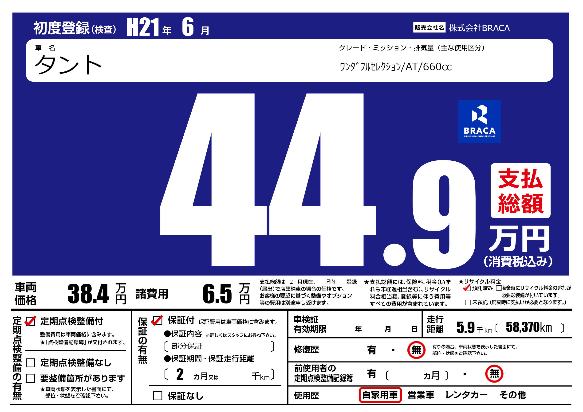 保証付き 保証内容(部分保証) 2ヶ月または()千kmまで |