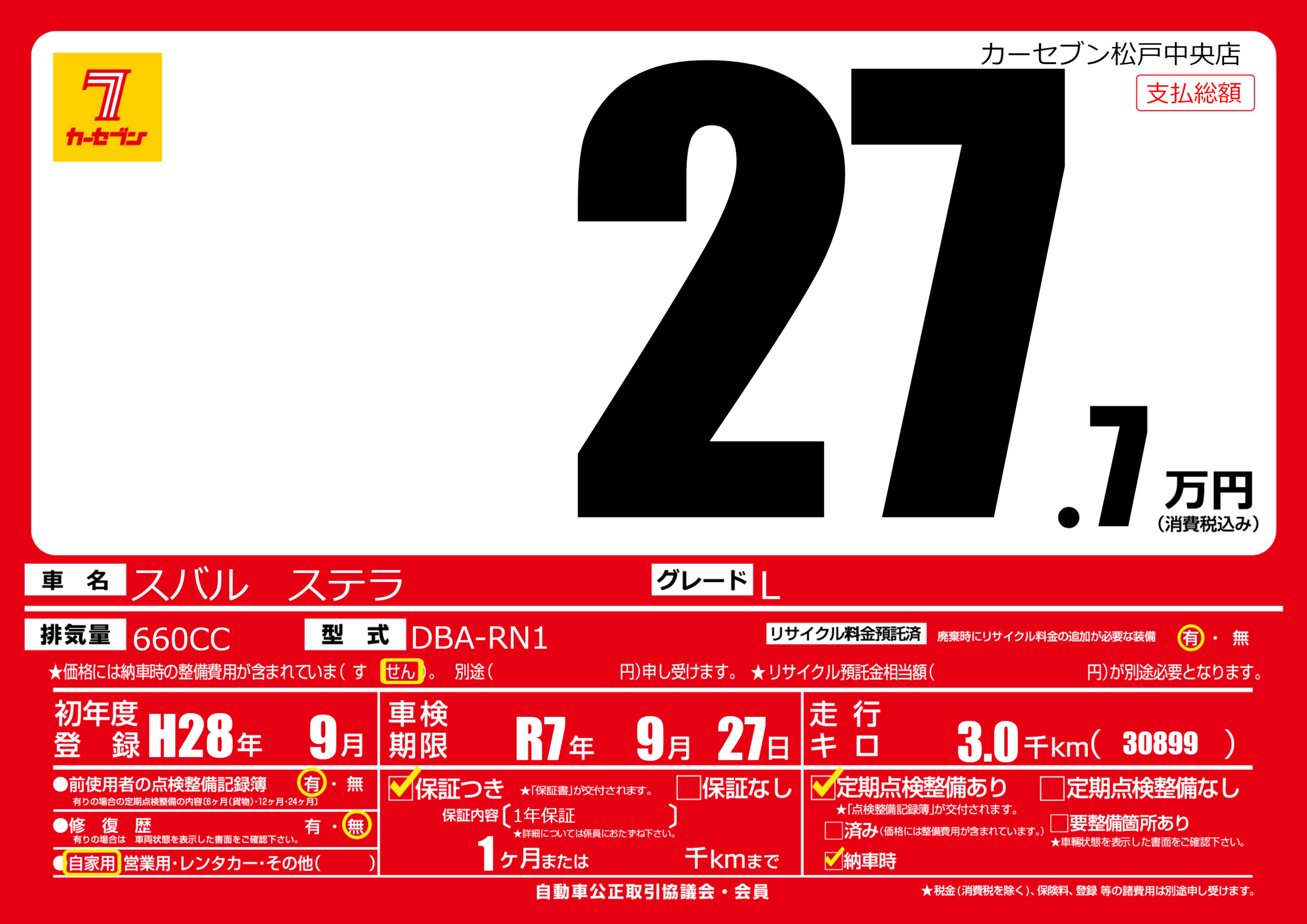 なし | 車検制限 | R7年9月27月 |