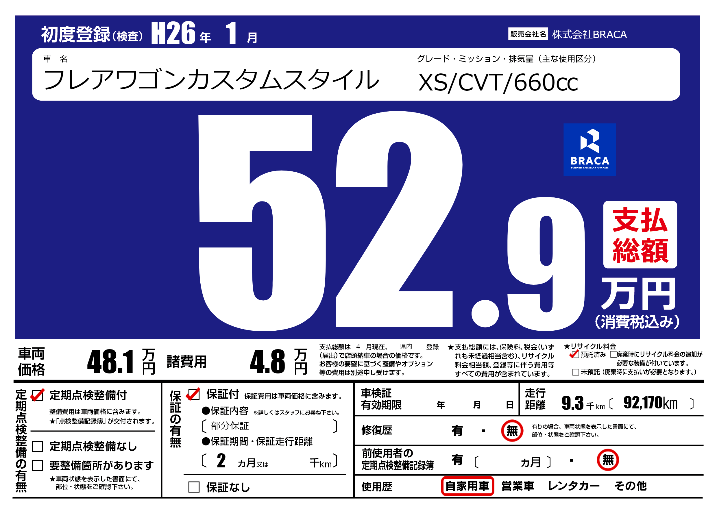 | 走行キロ | 0.9万km | 初年度登録 | H26年1月 |