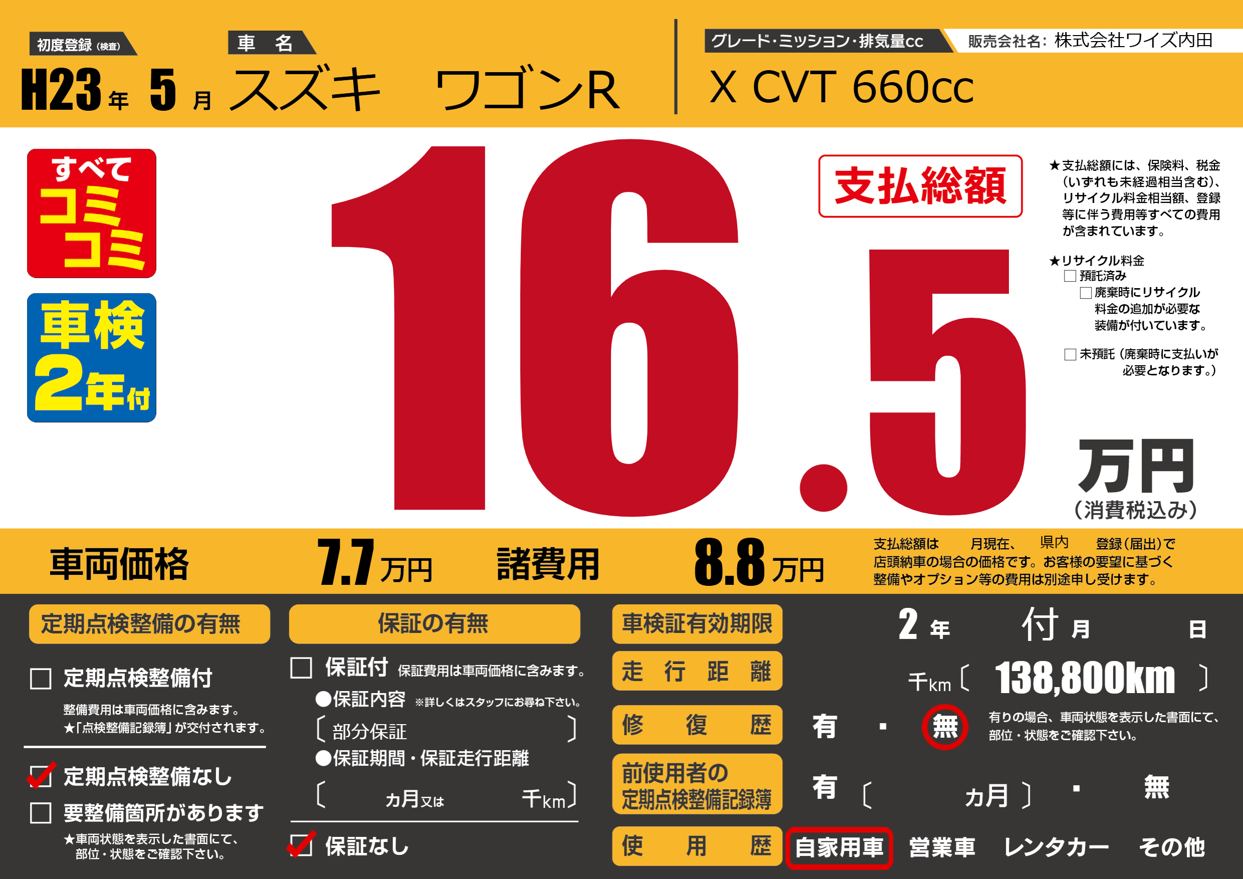 なし | 車検制限 | 2年付月---月 |