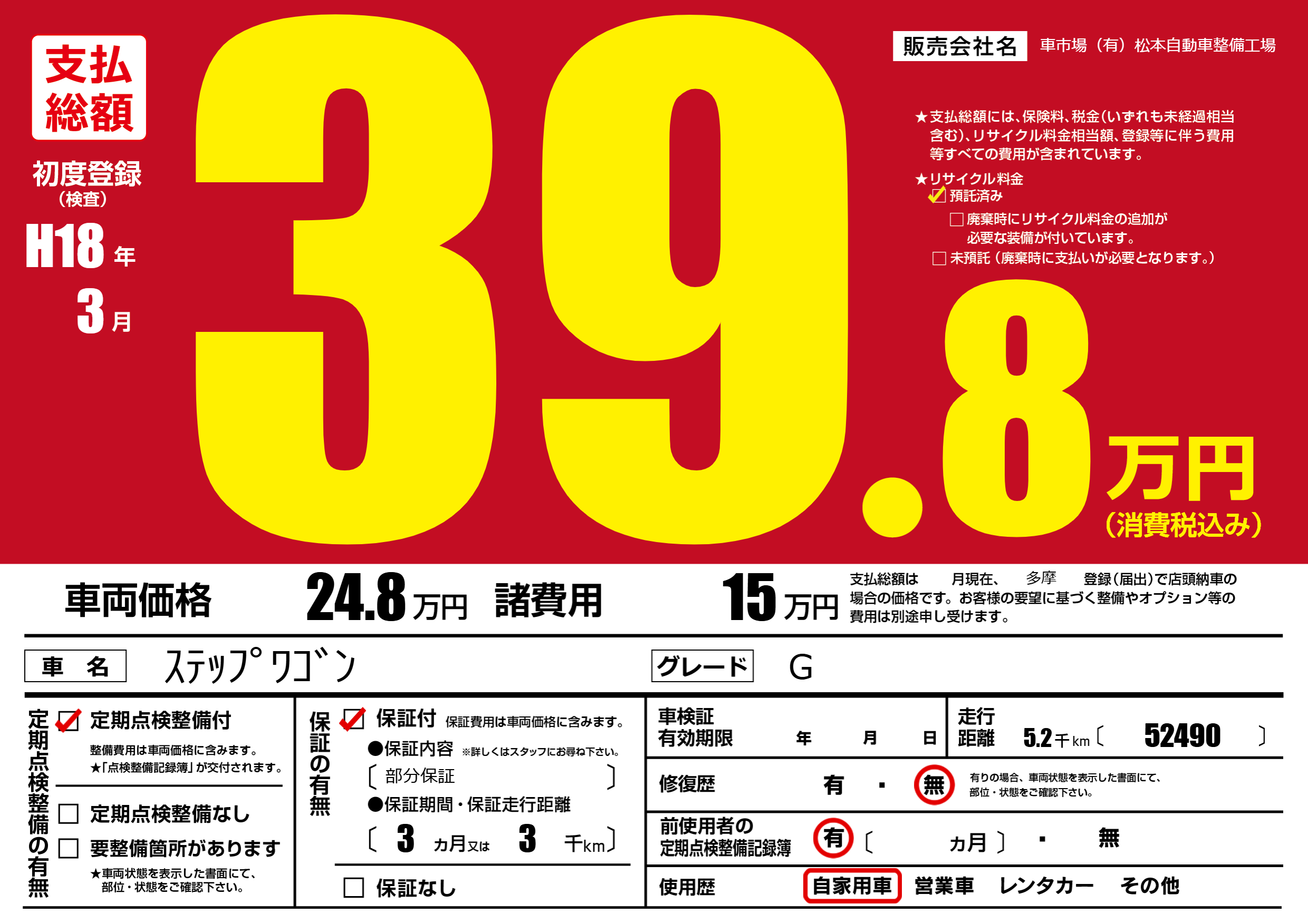 | 定期点検整備 | 定期点検整備あり | ||