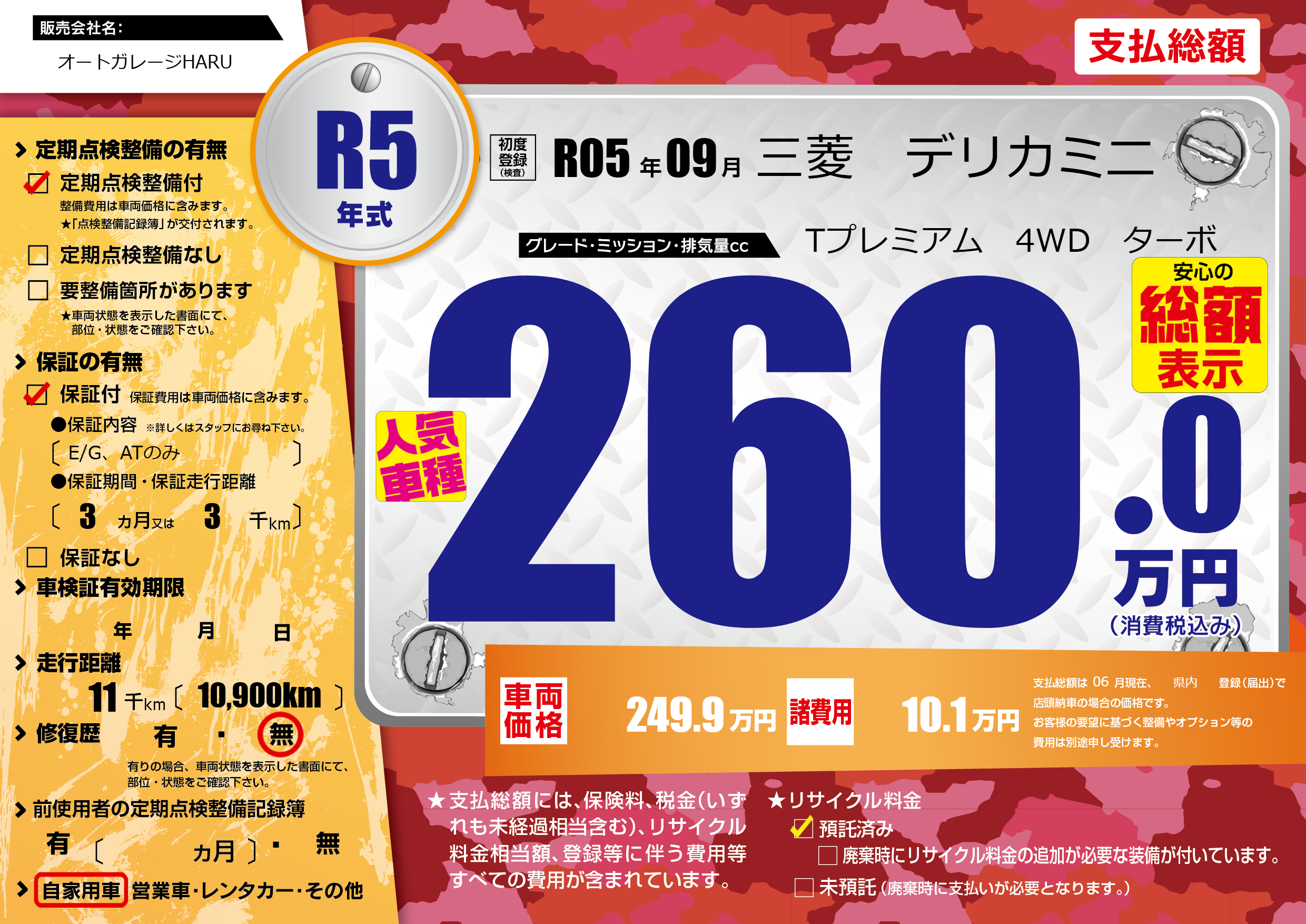| 車名 | 三菱 デリカミニ | グレード ミッション 排気量 |