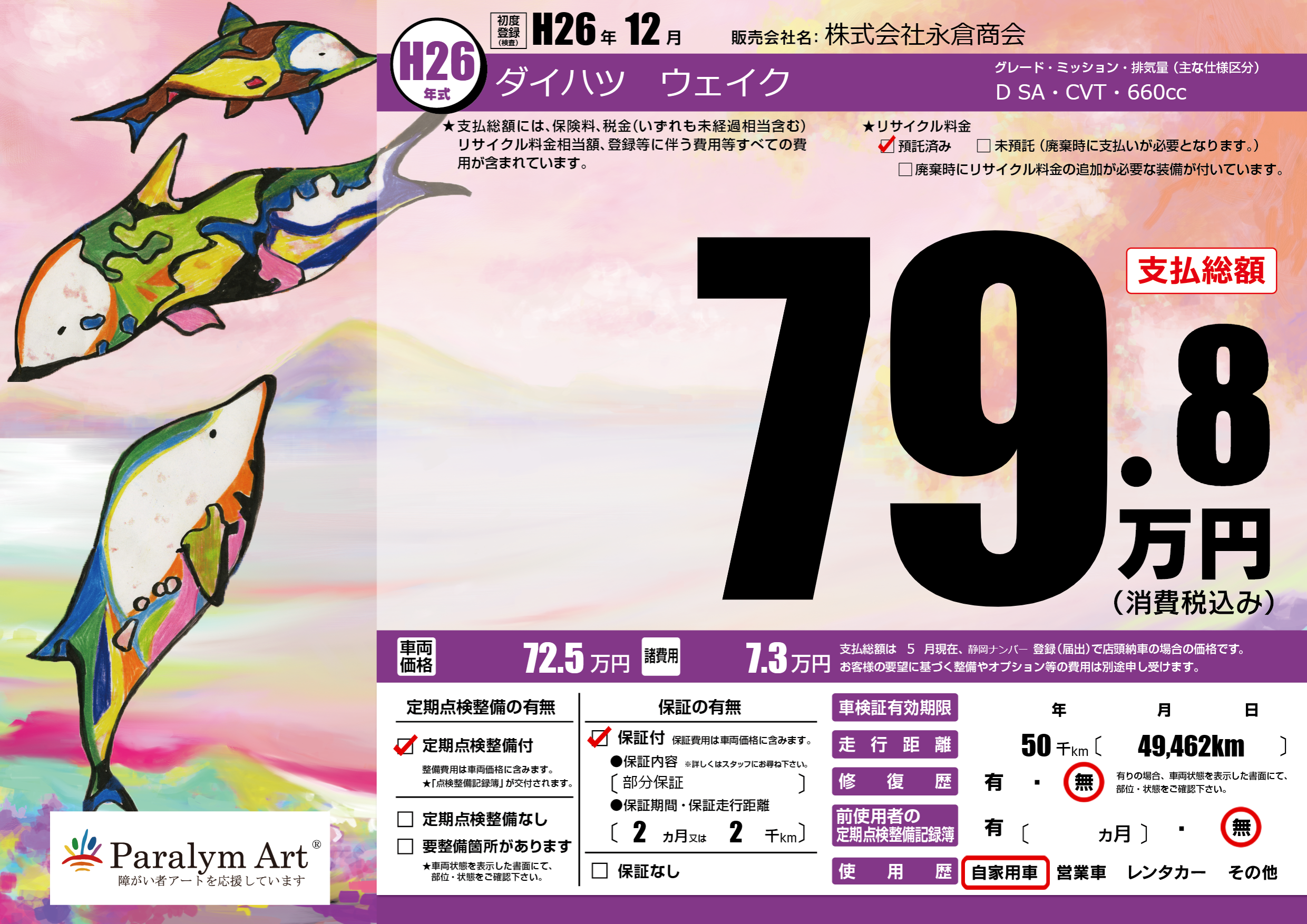 | 走行キロ | 5万km | 初年度登録 | H26年12月 |